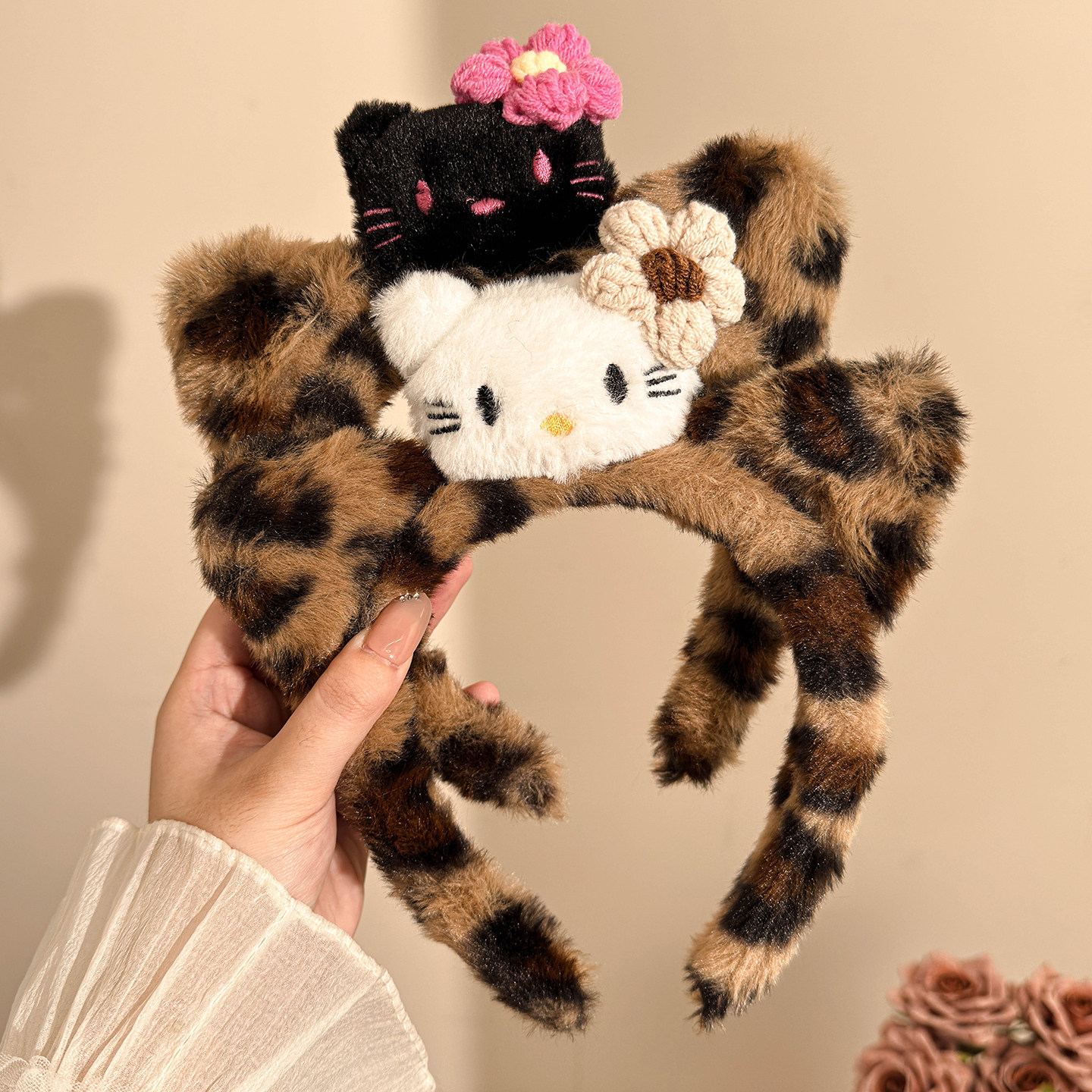 可爱毛绒豹纹Kitty猫发箍秋冬新款卡通头箍洗脸化妆压发卡头饰女