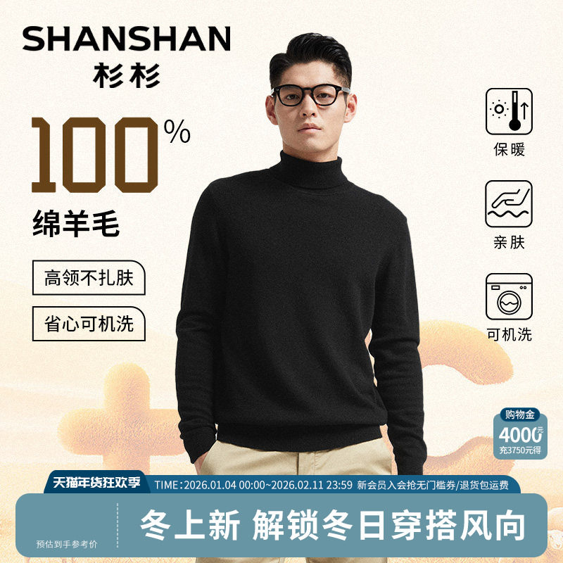 [100%纯羊毛]杉杉高领男士毛衣2025秋冬季新款打底内搭羊毛衫男款