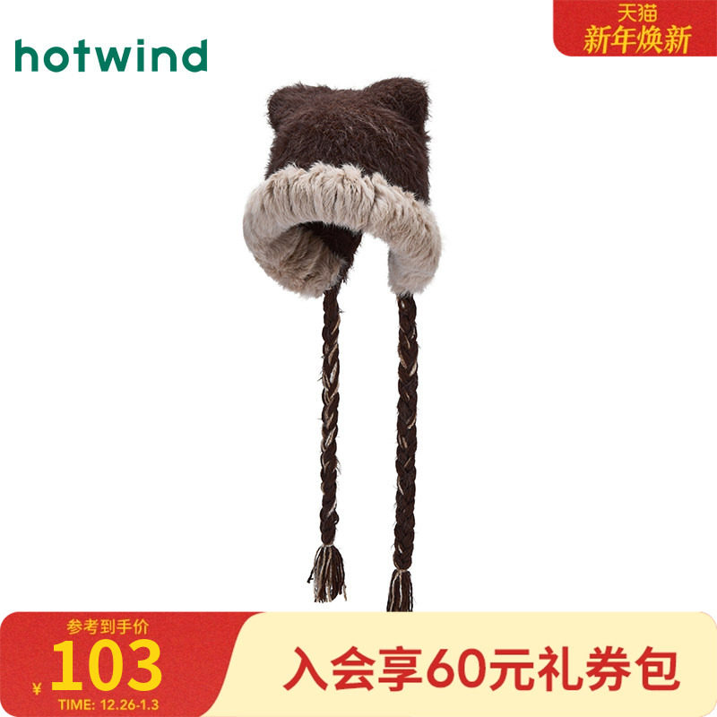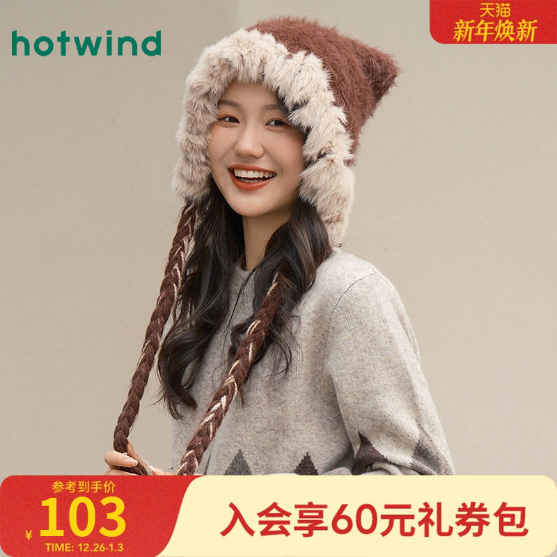 热风女士帽子2025年冬季新款毛绒拼接护耳毛线帽保暖显脸小帽子