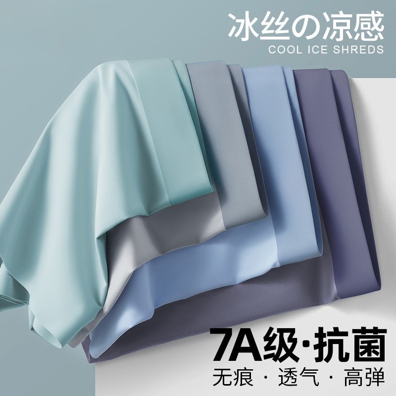 内裤男士冰丝抗菌抑菌大码透气四角平角短裤衩底裤头纯棉冰丝无痕