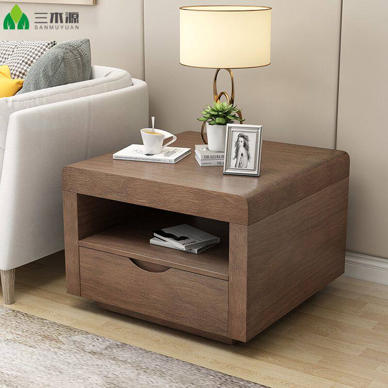 b北欧现代简约沙发边柜角几家用黑色正方形客厅小茶几卧室座