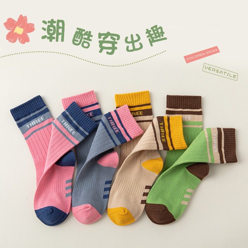 纯棉童袜春秋款夏季薄款防臭不起球男女袜子全棉中筒袜时尚儿童袜