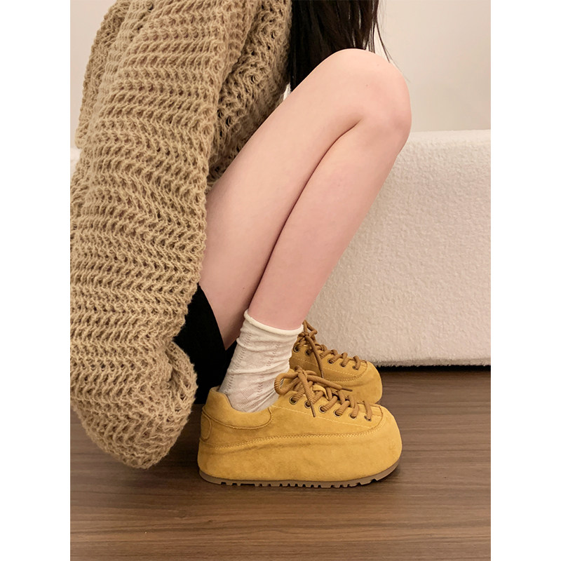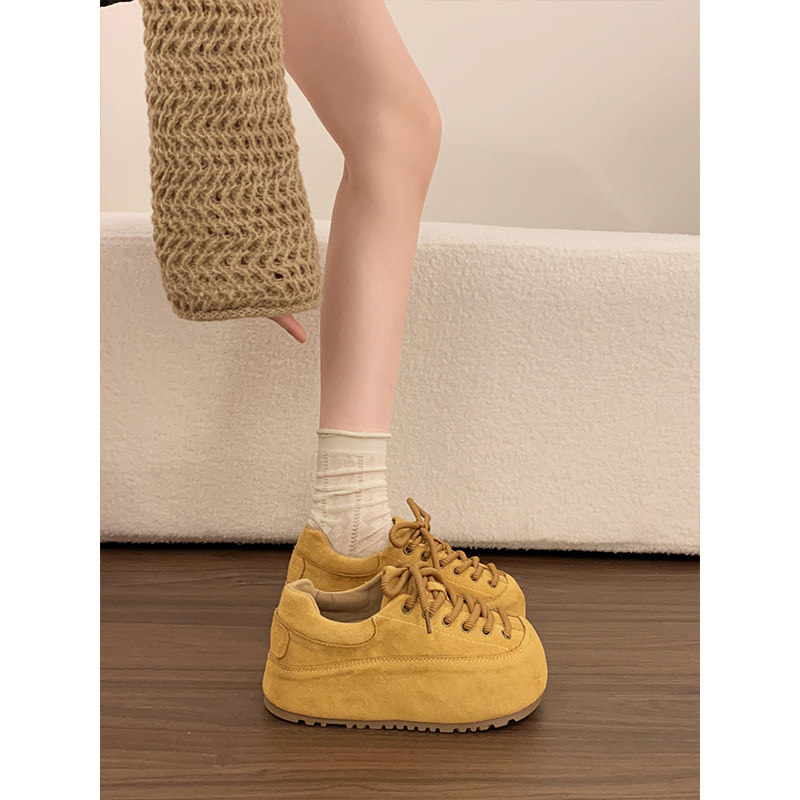 多嘴驴Donkey丑萌大头鞋女秋冬魔术贴运动休闲德训鞋黄色厚底板鞋