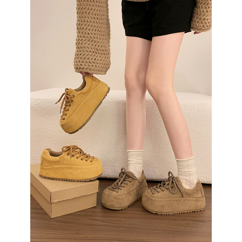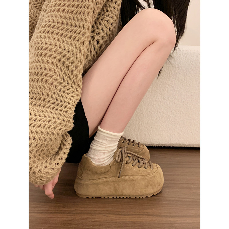 Chio2nd南风 4cm增高磨砂牛皮德训鞋子女款秋冬复古休闲鞋运动鞋