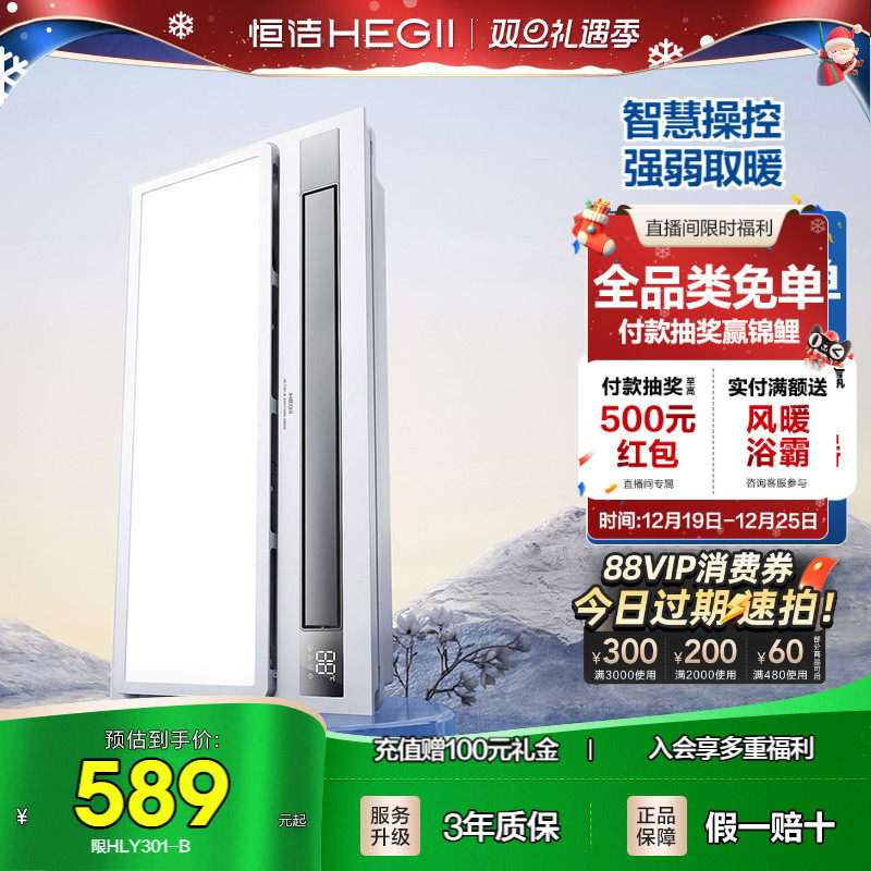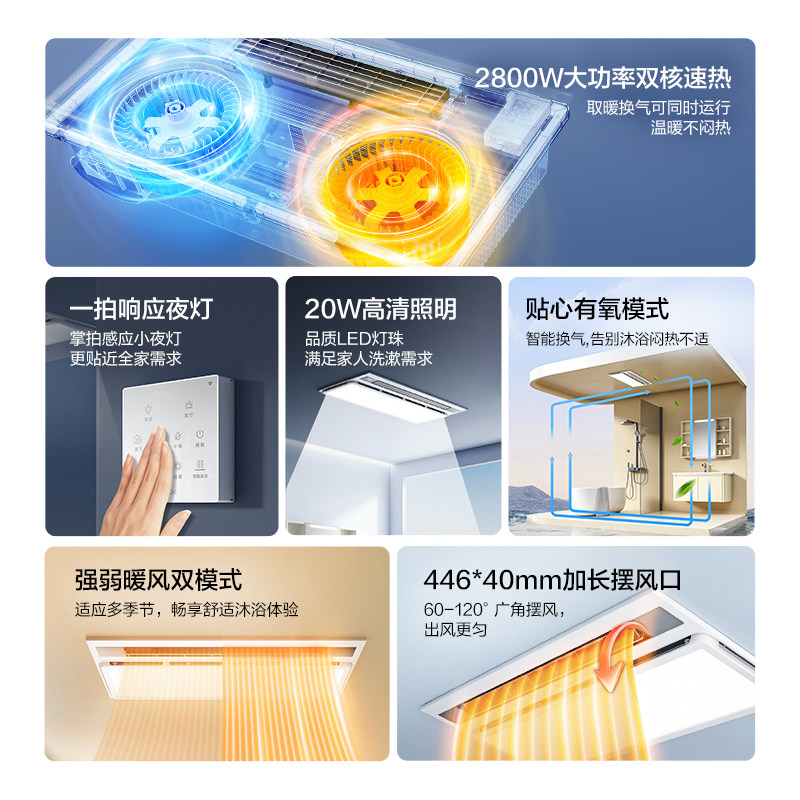 恒洁卫浴浴霸灯智能风暖数显排气扇换气卫生间暖风机取暖照明一体