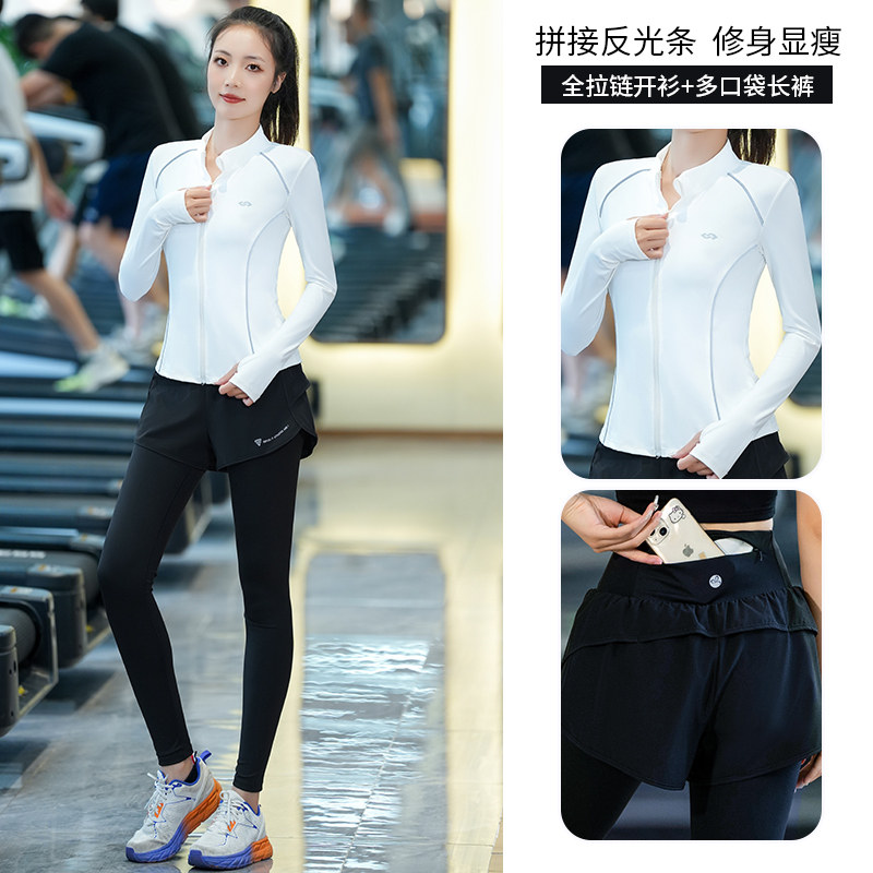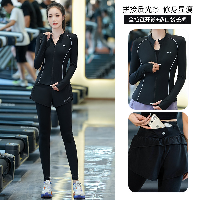 跑步运动服长袖女秋季开衫瑜伽服宽松显瘦健身服套装加绒速干滑雪