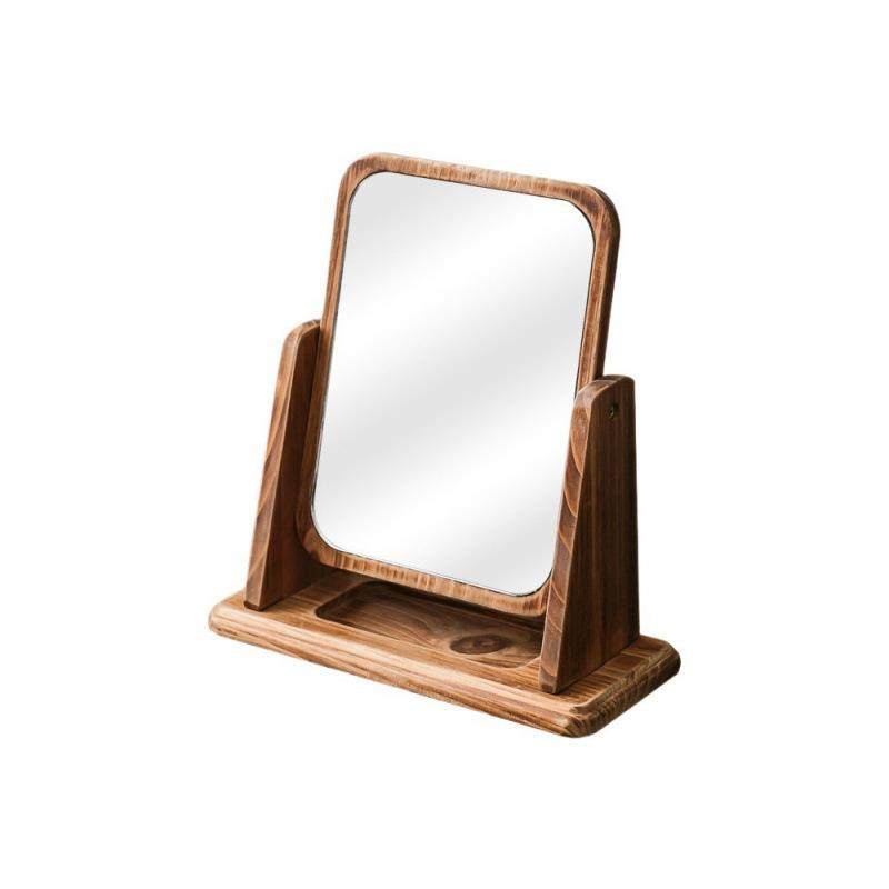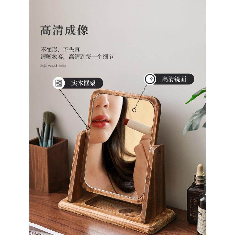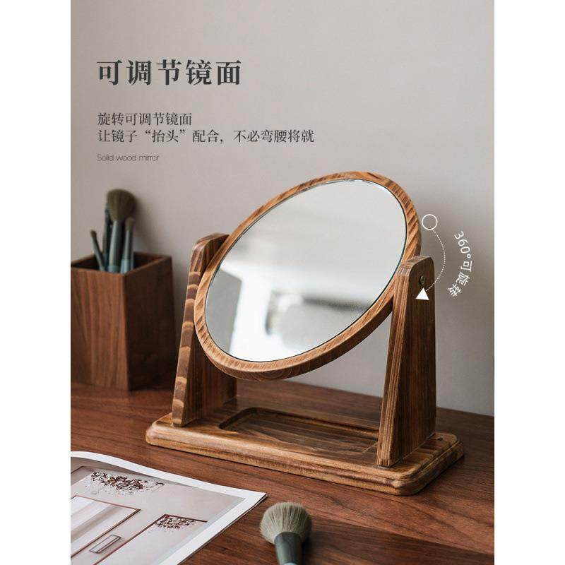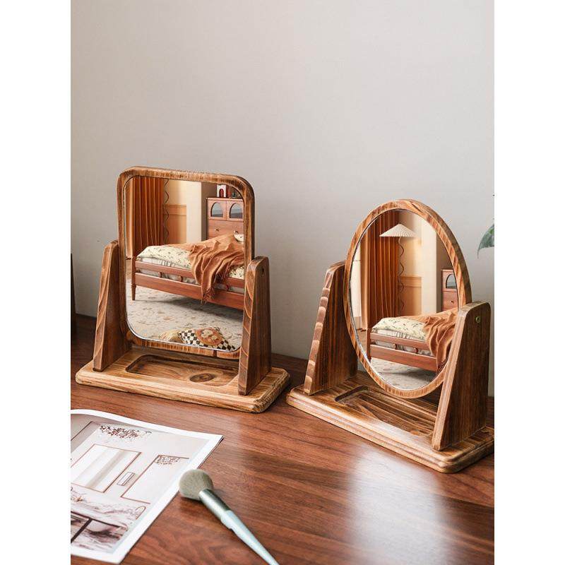 复古镜子化妆镜宿舍卧室桌面大号高清台式梳妆镜可旋转便携实木镜