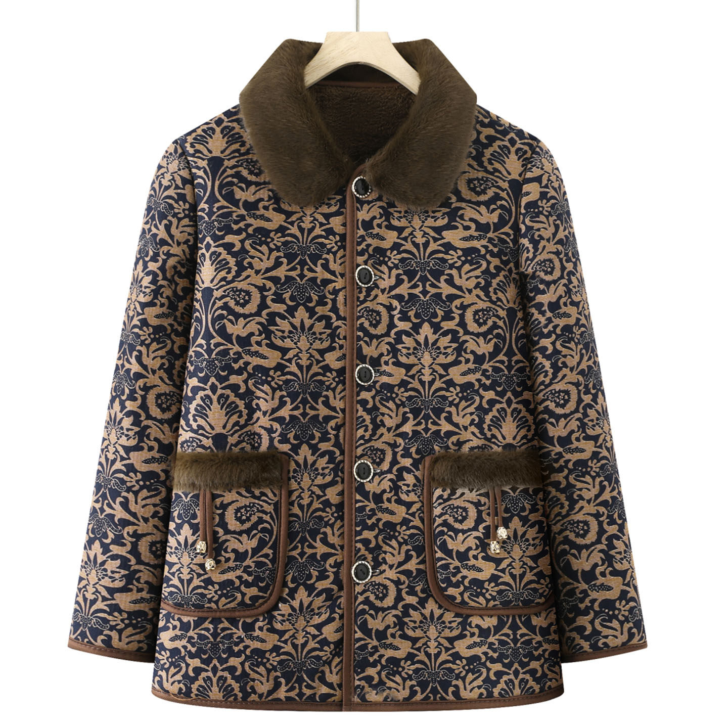 妈妈秋冬季加绒外套女中老年人大码宽松翻领棉衣三层加厚棉服上衣