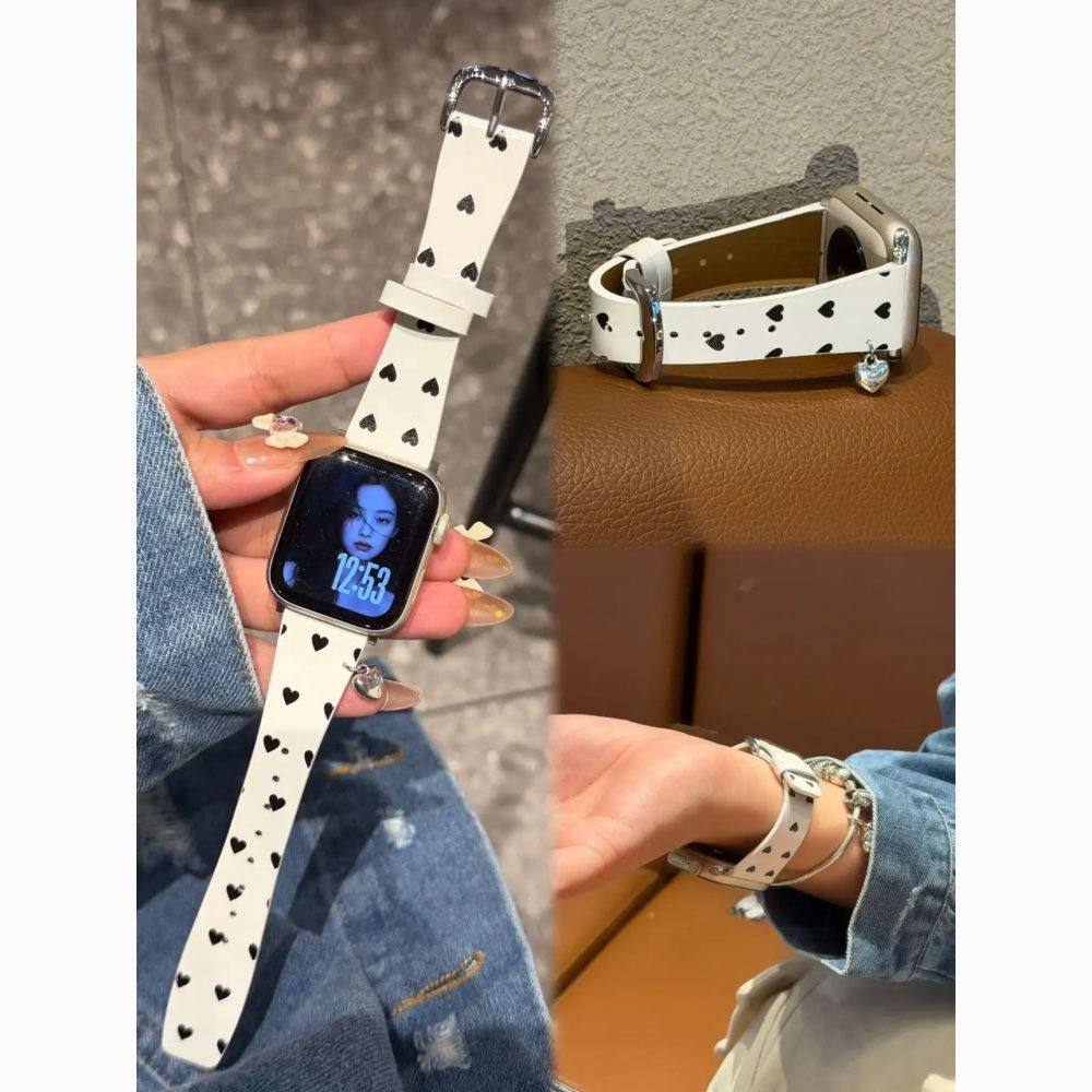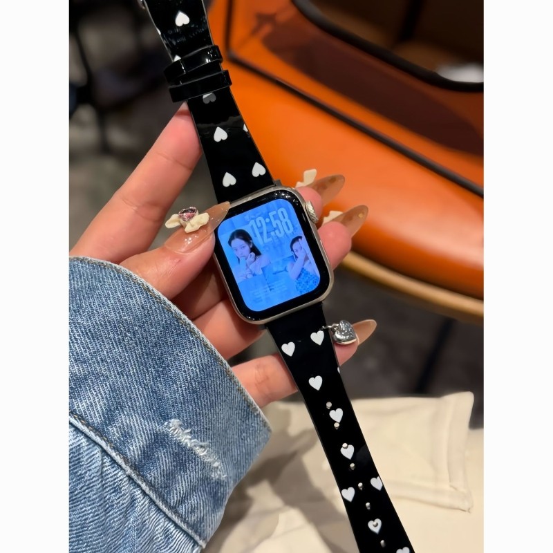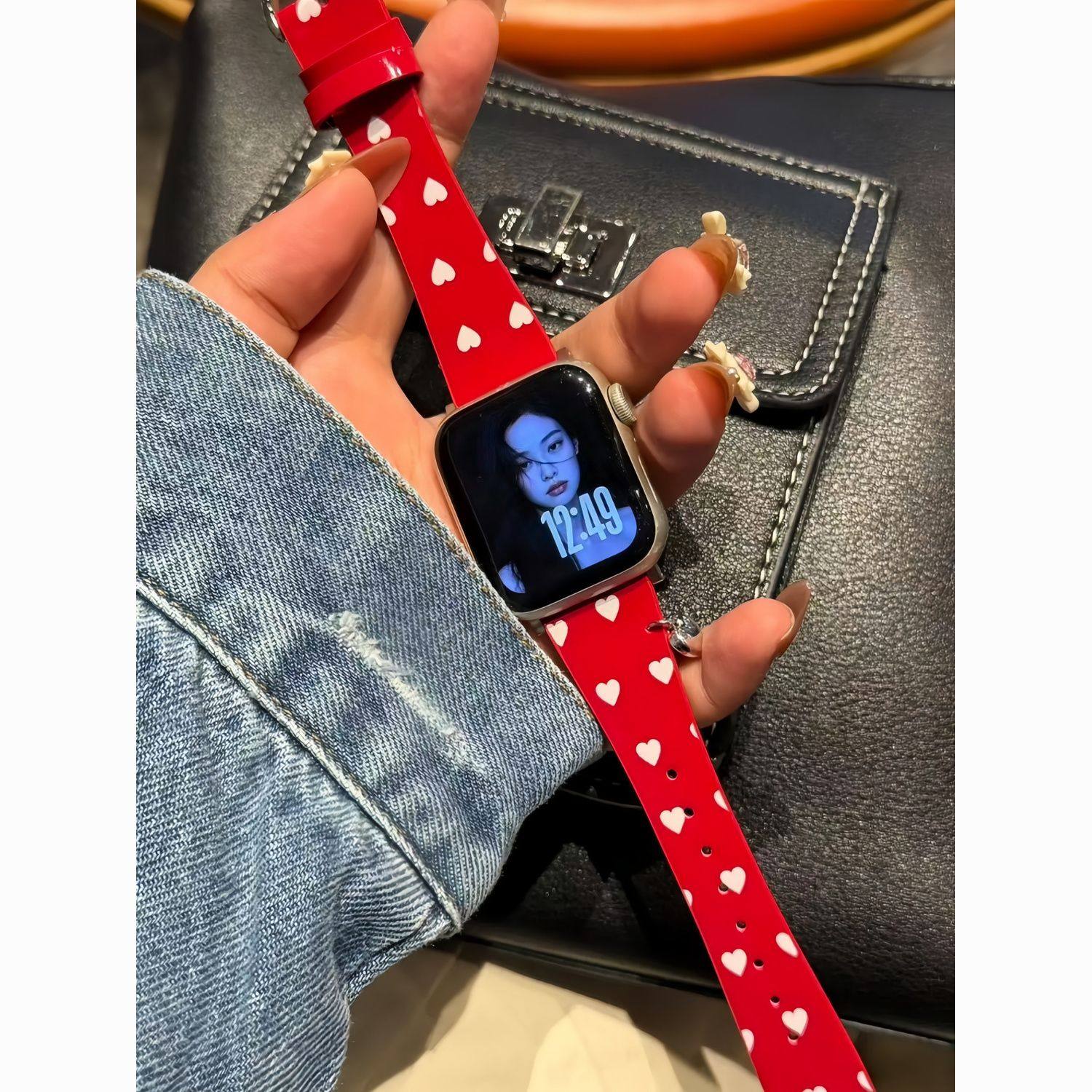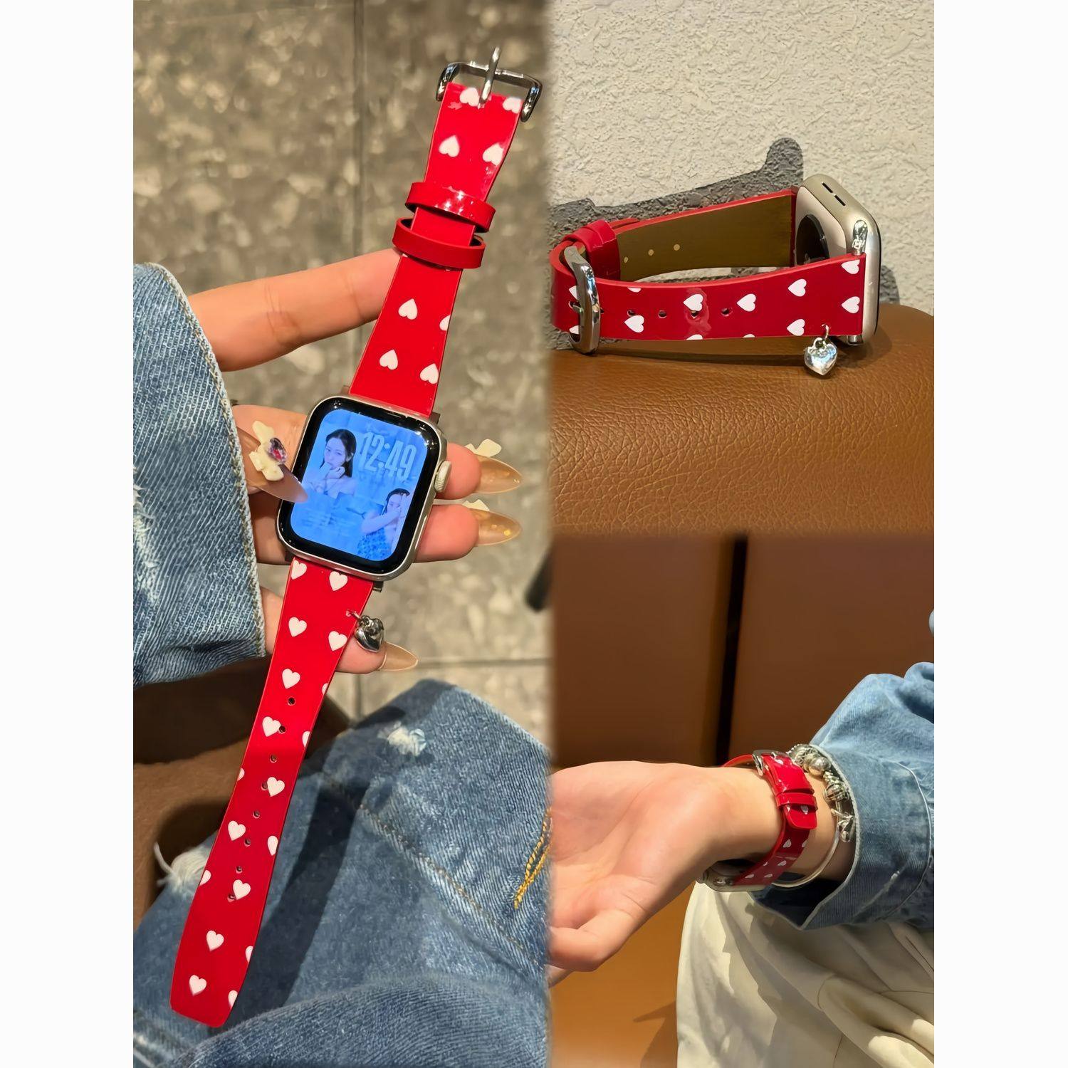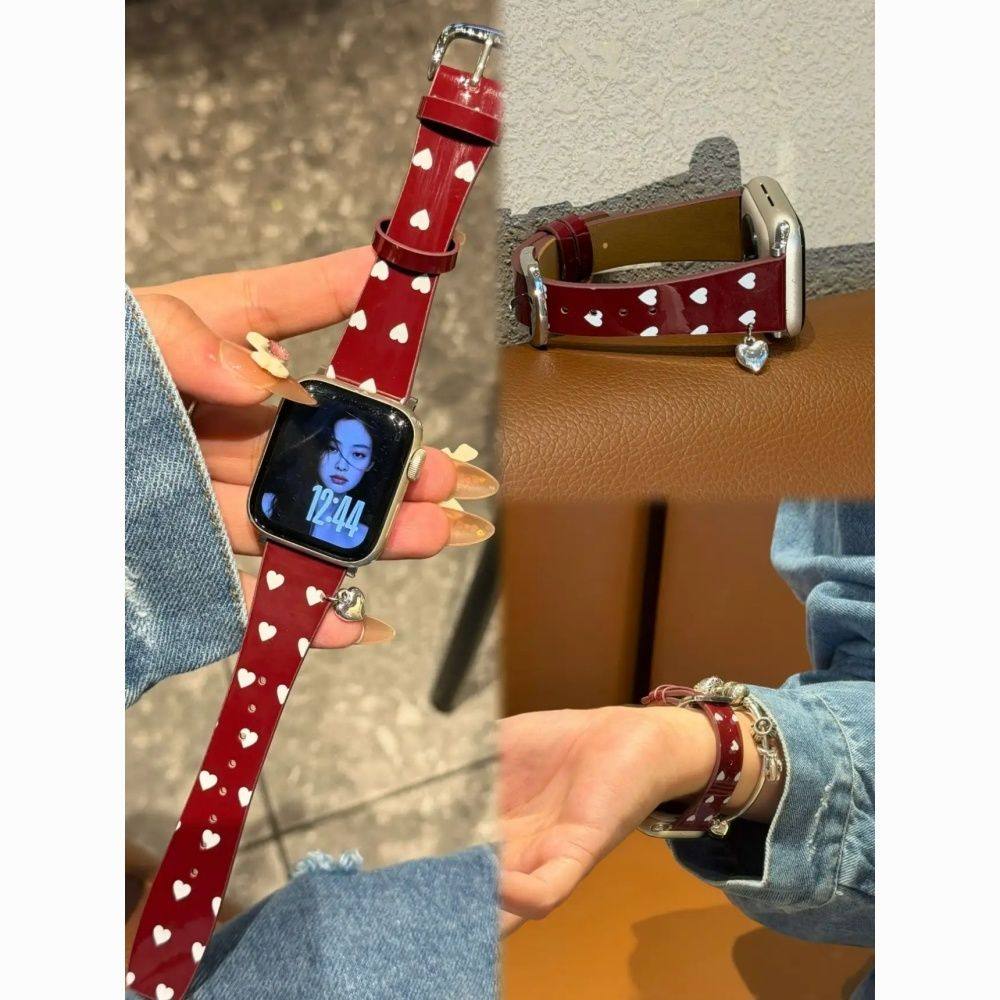 适用于小米手环9pro表带爱心漆皮小蛮腰皮红米watch6圣诞红华为GT6创意韩系vivo新年fit4秋冬腕带苹果运动