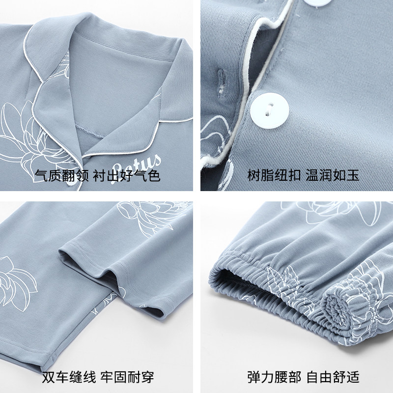 浪莎睡衣女春秋款纯棉长袖2025年新款秋冬大码薄款宽松开衫家居服