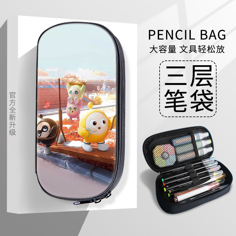 卡通可爱铅笔盒蛋仔派对学生笔袋中小学生大容量帆布三层防水文具盒多功能学习用品收纳印花拉链文具袋女孩子