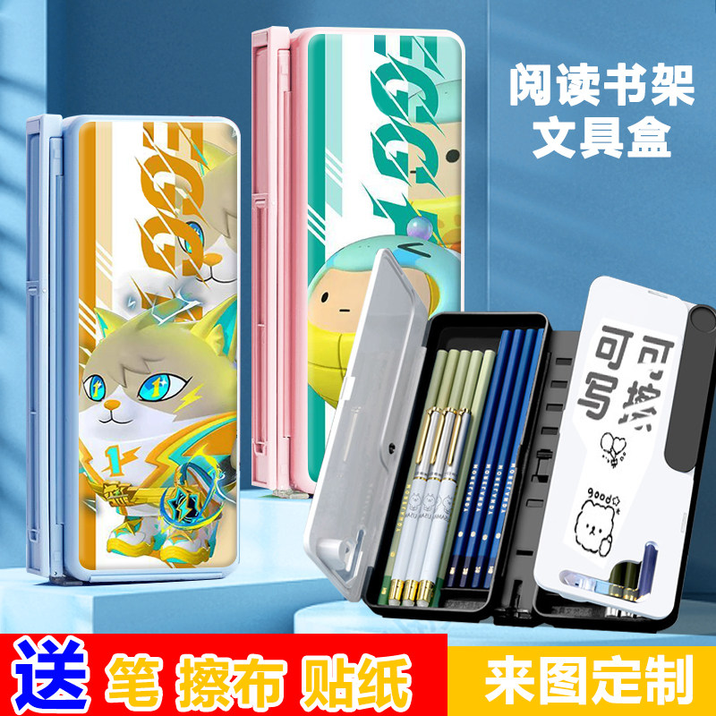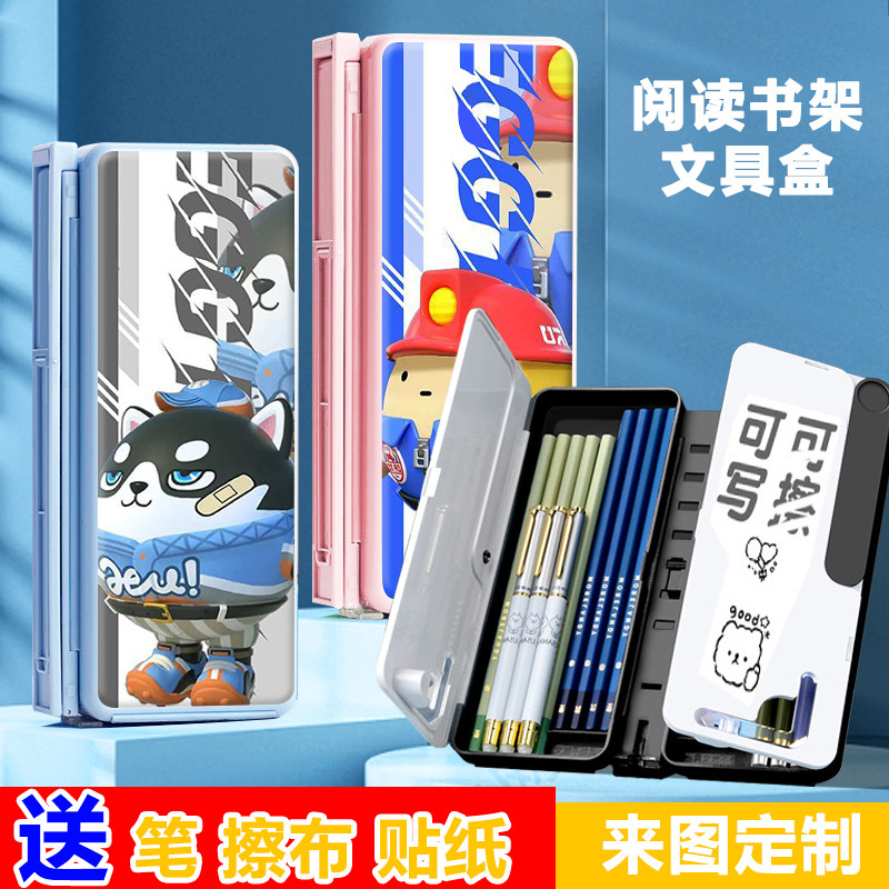 学生多功能铅笔i盒阅读书架笔盒可调节升降读书架文具盒蛋卡通动