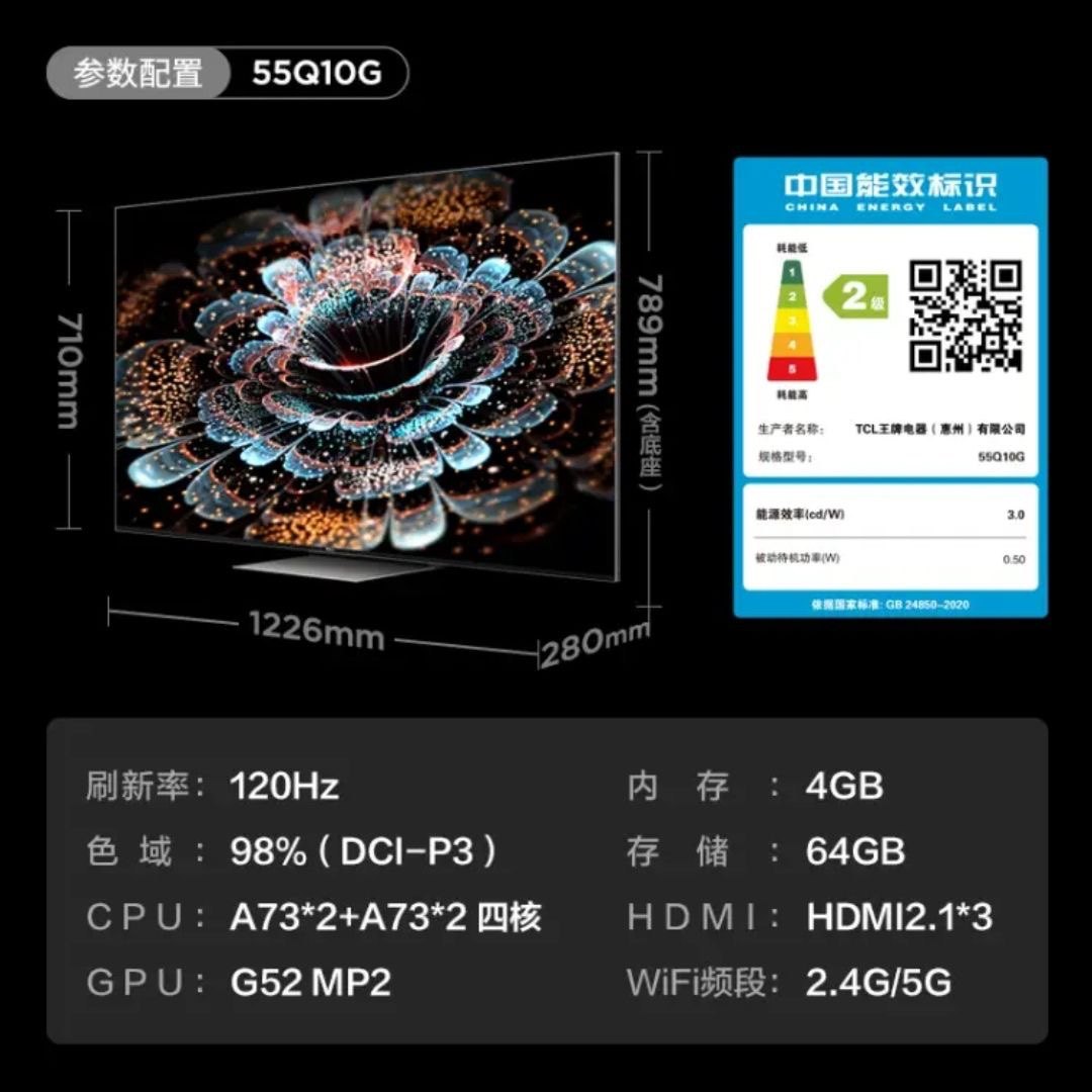 TCL 55Q10G 55英寸MiniLED量子点4K超清120Hz液晶智能平板电视机