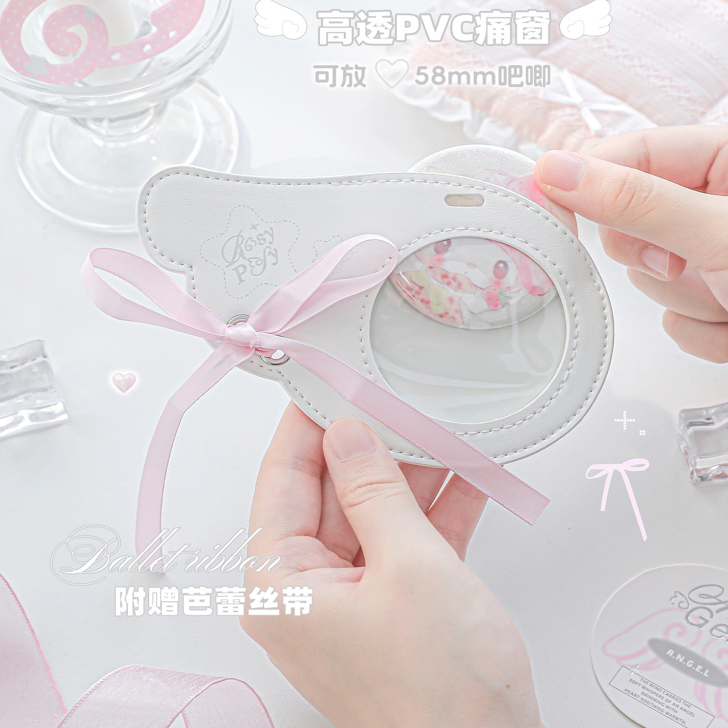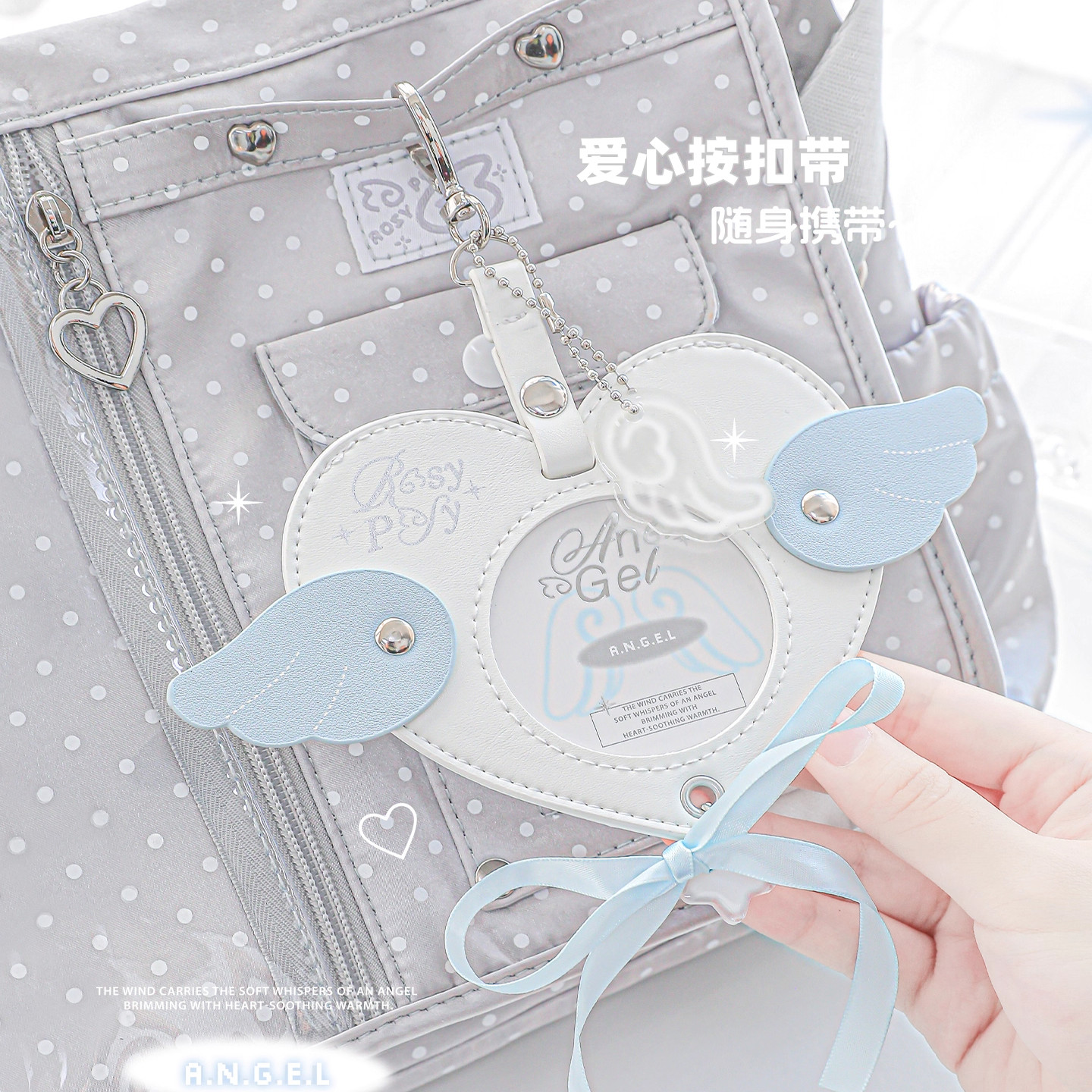 RosyPosy柔设天使卡套追星校园卡套饭卡小卡吧唧套书包挂件追星保护套学生公交卡证件卡片套横版门禁套皮质