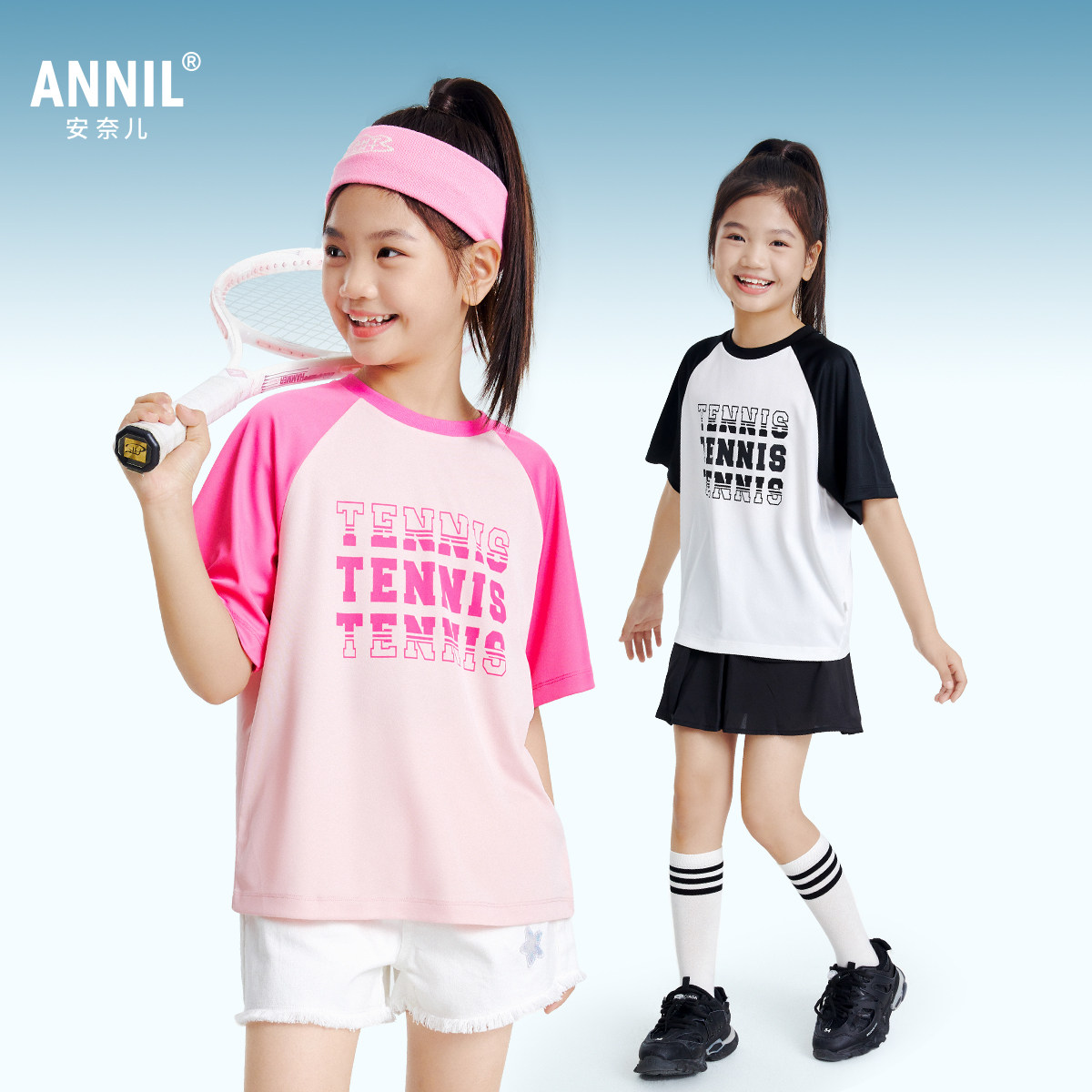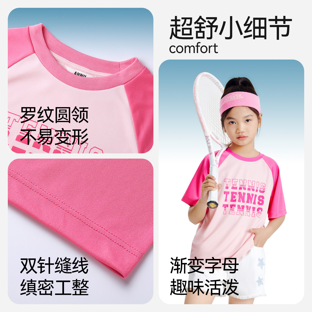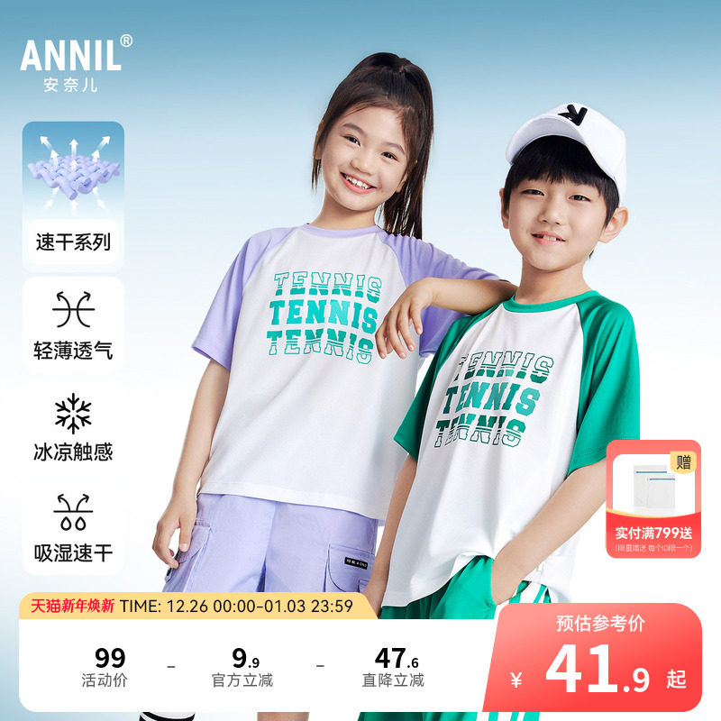 安奈儿男童女童圆领短袖T恤2025夏新款吸湿速干轻薄透气凉感休闲