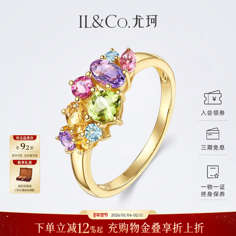 ILCO尤珂「和彩弥夏」黄18K金天然多色宝石戒指彩虹碧玺彩宝女戒