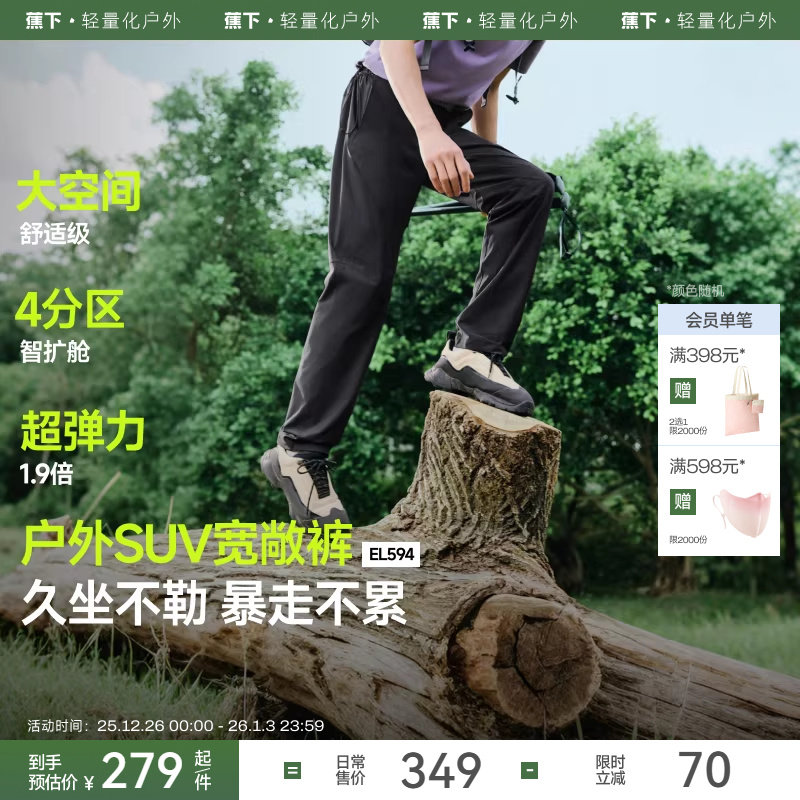 蕉下户外登山裤男士宽松耐磨EL594薄款裤子机能工装裤冲锋休闲裤