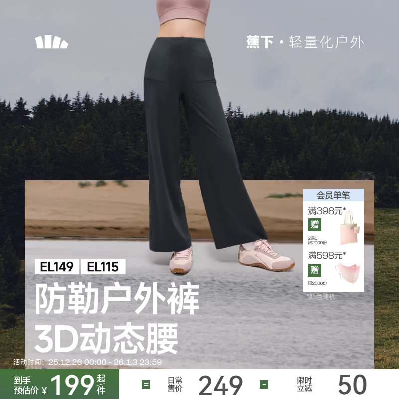 蕉下健身裤女加绒高腰提臀垂坠感运动裤阔腿高弹裸感普拉提瑜伽裤