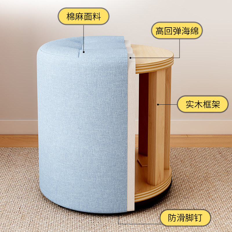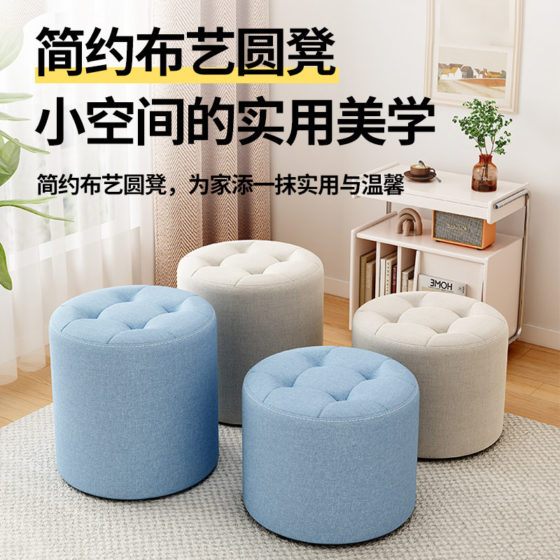 布艺小凳子家用矮凳圆凳简约客厅沙发茶几凳创意墩子网红实木板凳