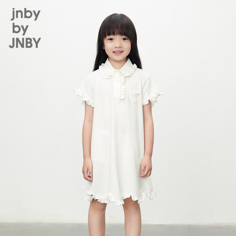 江南布衣童装短袖连衣裙衬衫领A字裙木耳边夏女童儿童jnbybyjnby