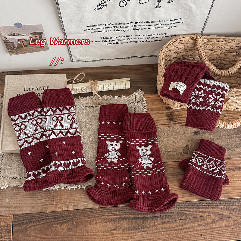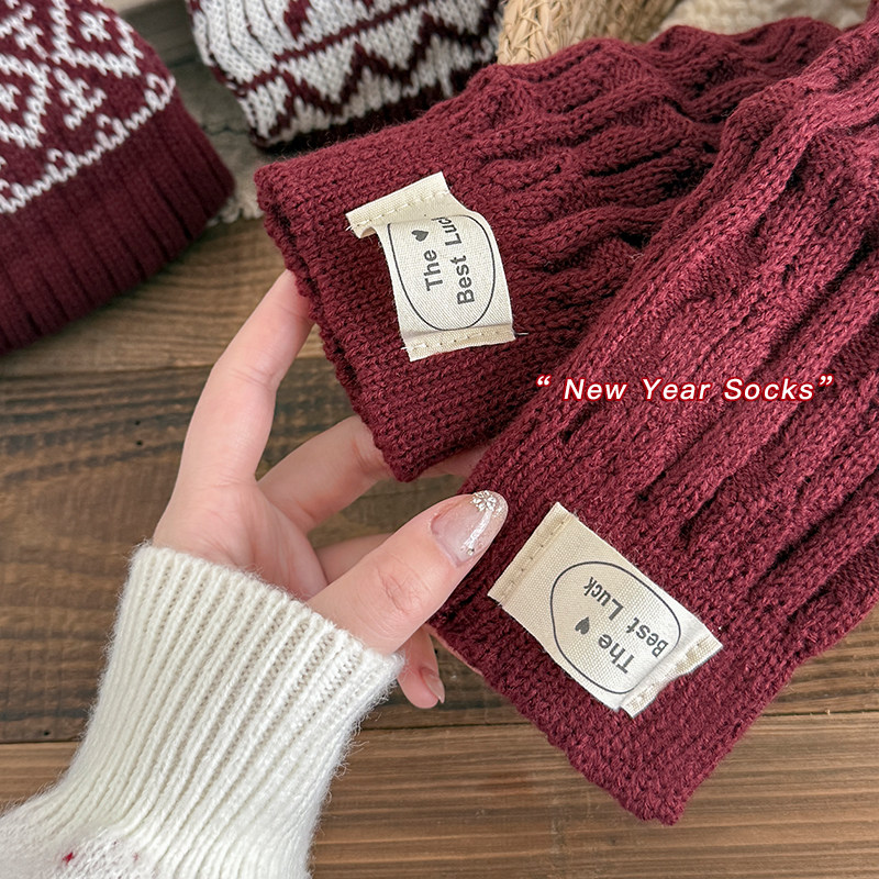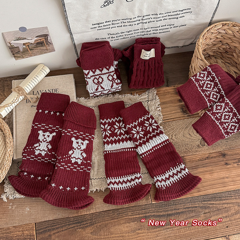 儿童袜套女童针织堆堆袜秋冬季保暖过年红色配雪地靴修饰腿型长筒