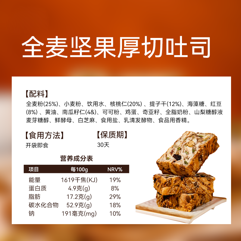 全麦坚果厚切千层爆料吐司无蔗糖整箱面包切片早餐解馋零食饱腹