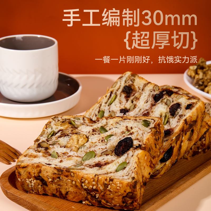 全麦坚果厚切吐司千层面包切片手撕0无蔗糖o代餐早餐整箱饱腹营养