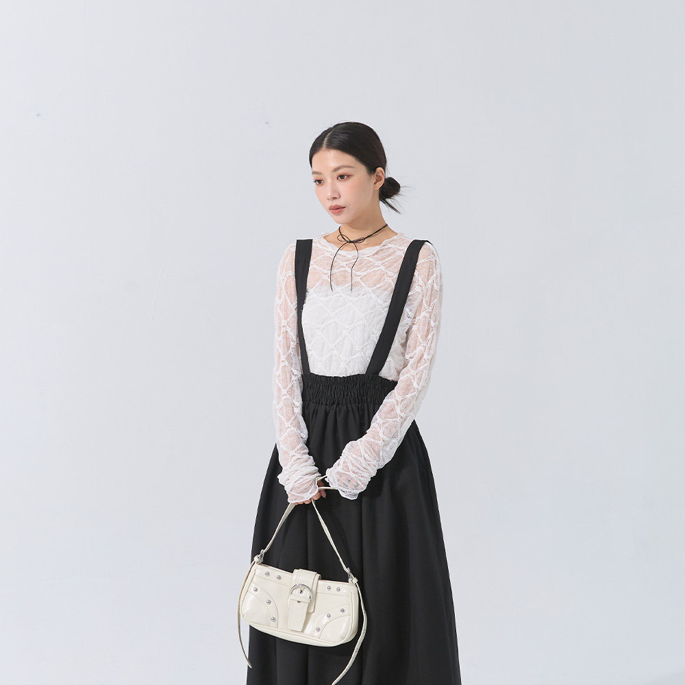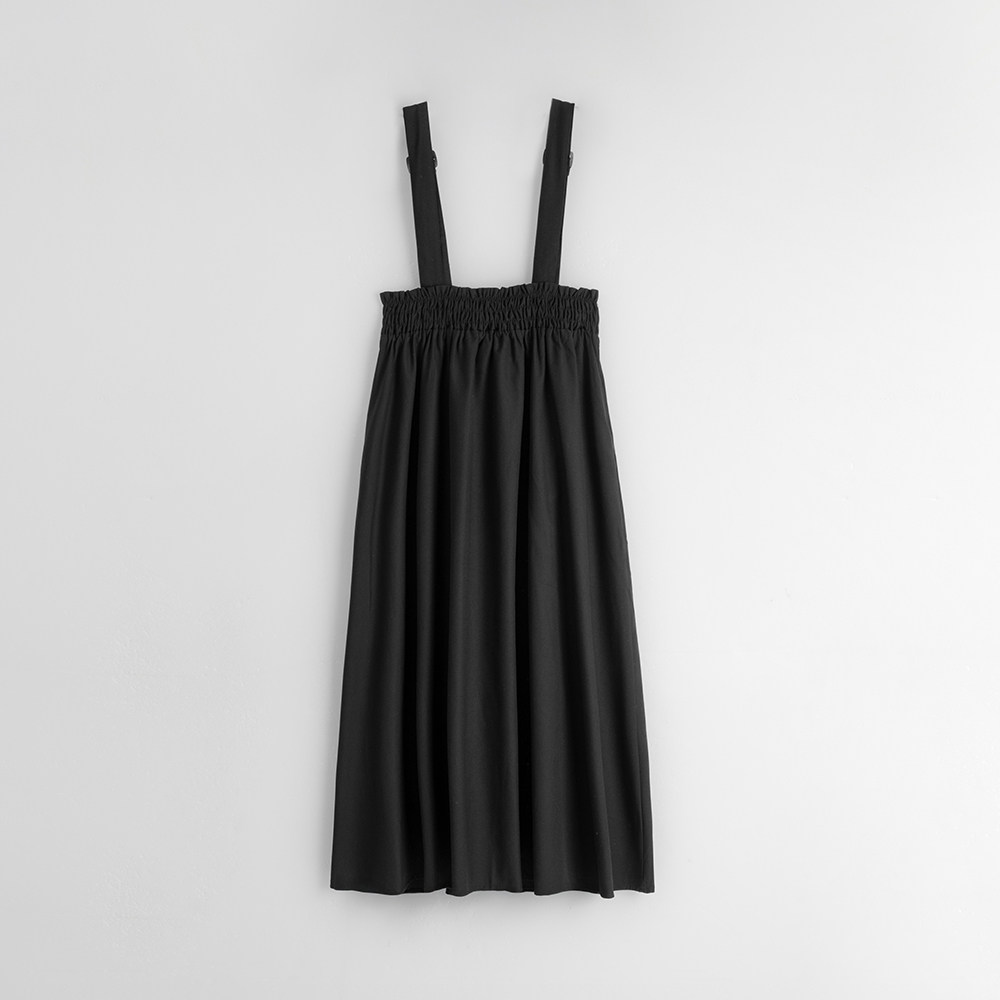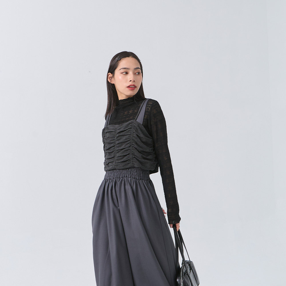 QUEENSHOP 2025秋冬新品女装褶皱宽肩两穿吊带连衣裙03060325