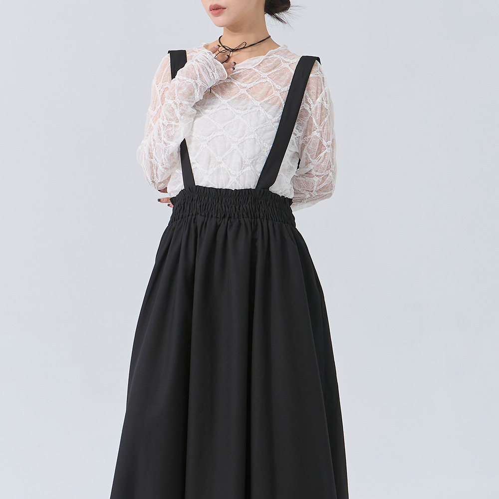 半练带胸垫裙子吊带裙白色连衣裙秋季流行长裙小个子黑色背心裙女
