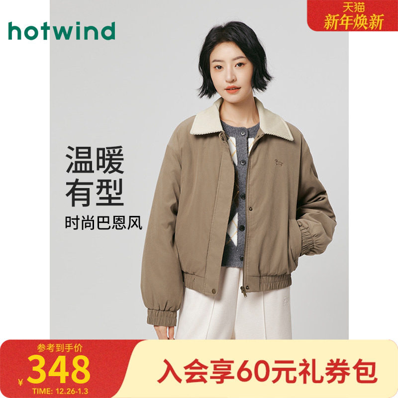 热风女士翻领夹克2025年冬季新款复古巴恩风宽松拼接休闲外套经典