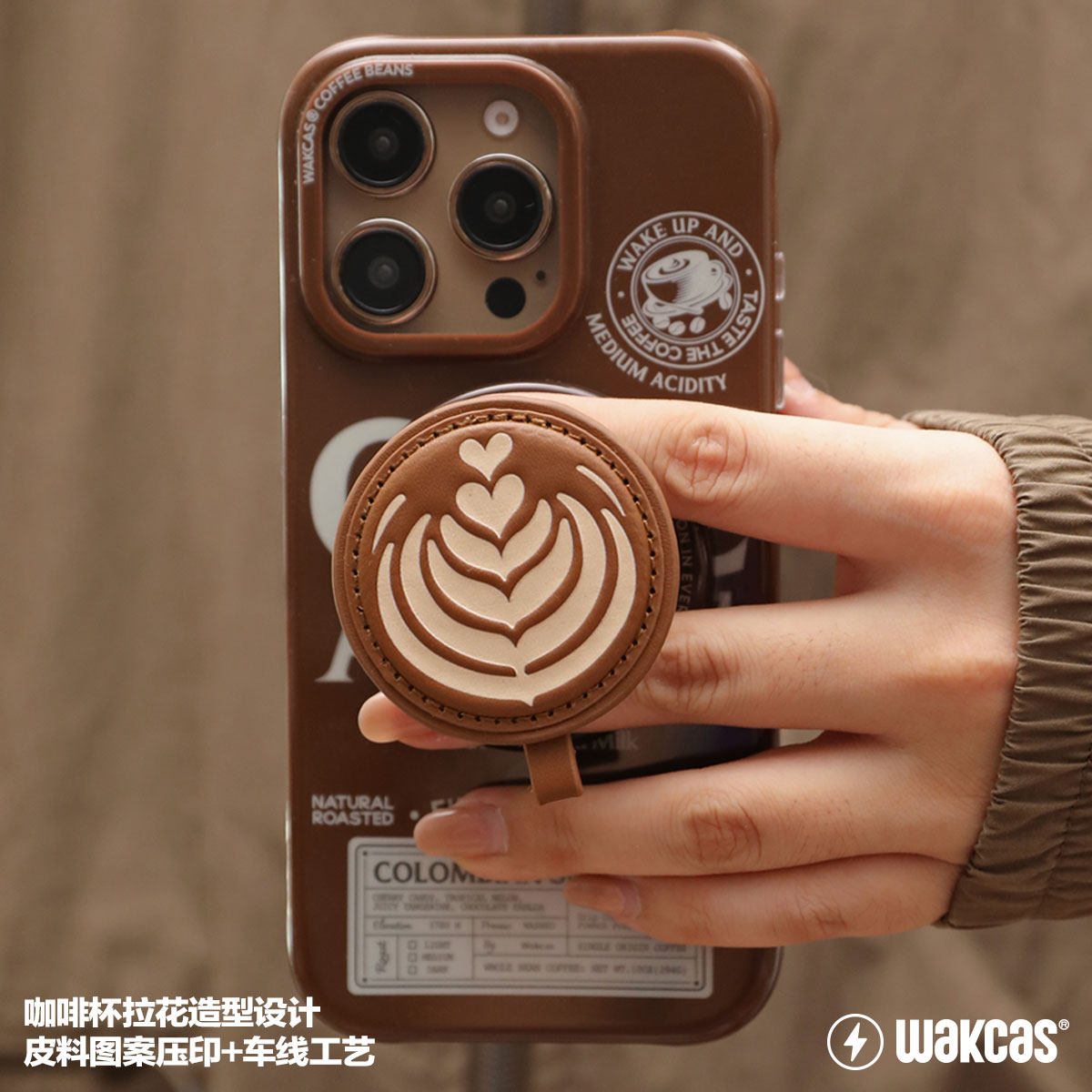 咖啡磁吸手机支架个性潮流原创设计金属磁吸手机支架皮质新款支架