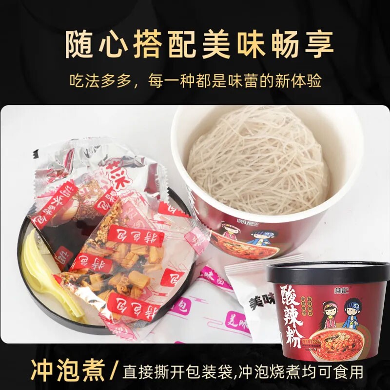 常记酸辣粉桶装方便速食整箱宿舍免煮冲泡宵夜方便速食批发