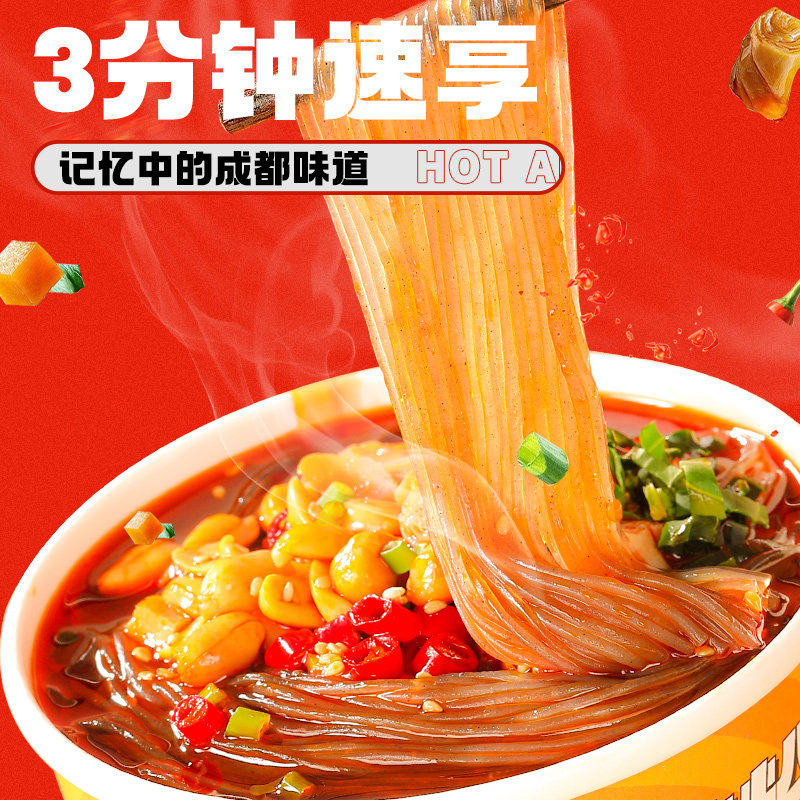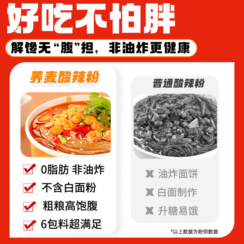 荞麦酸辣粉面桶装减0低速食热量脂肪卡粉丝米线充饥夜宵小零食品