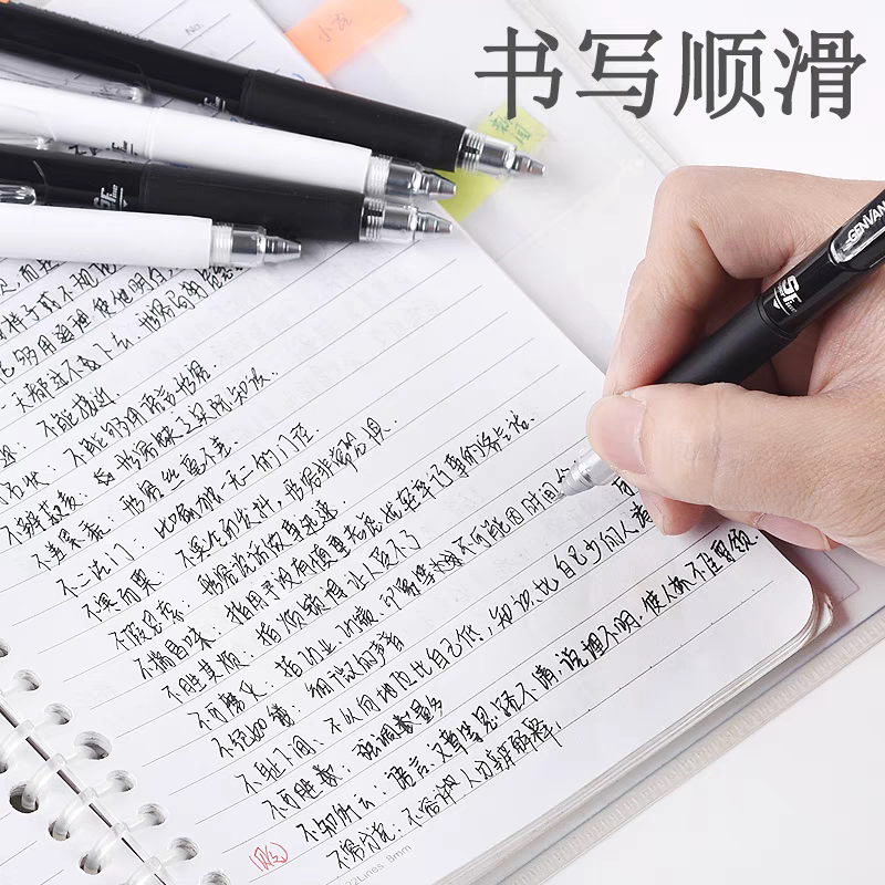 晨光按动中性笔黑色笔速干顺滑高颜值红蓝碳素笔考试办公用签字笔