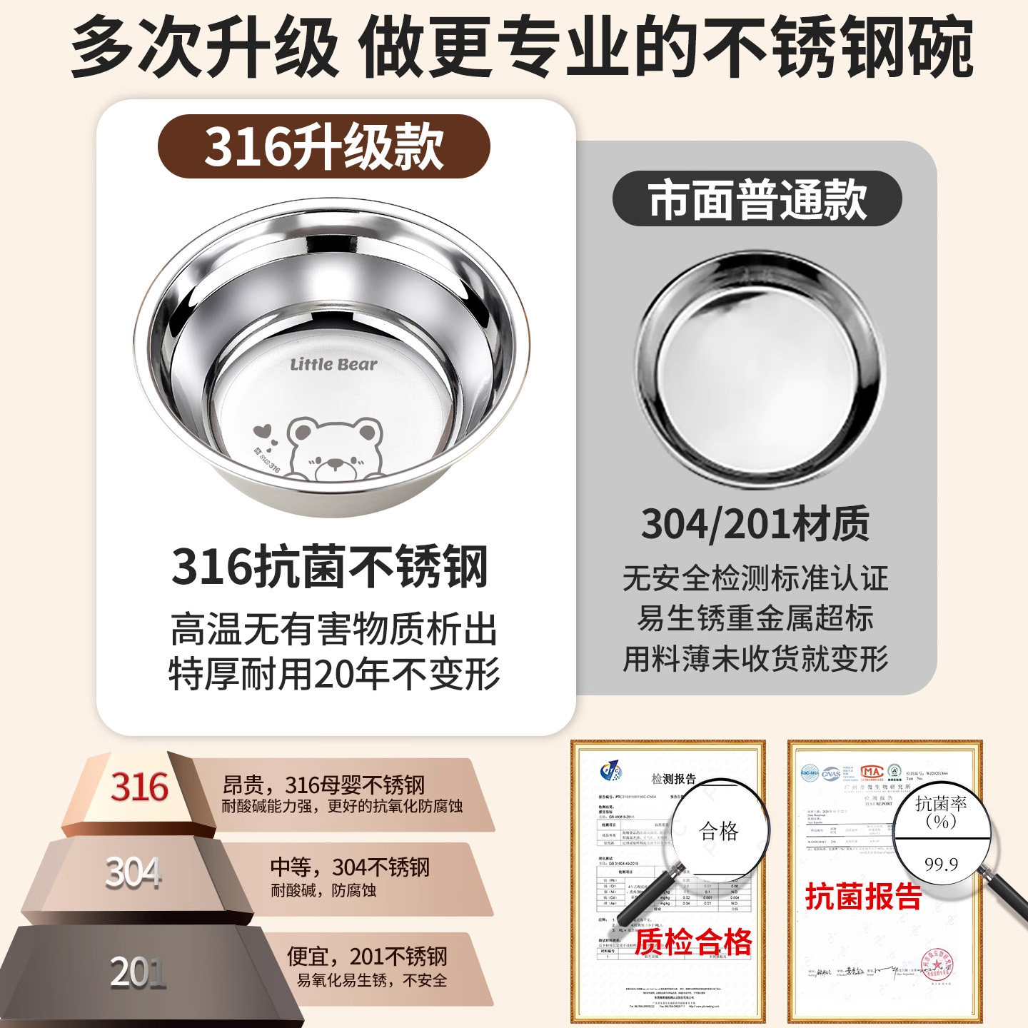 316不锈钢碗食品级汤碗家用汤盆加厚铁碗学生食堂打饭碗儿童小碗