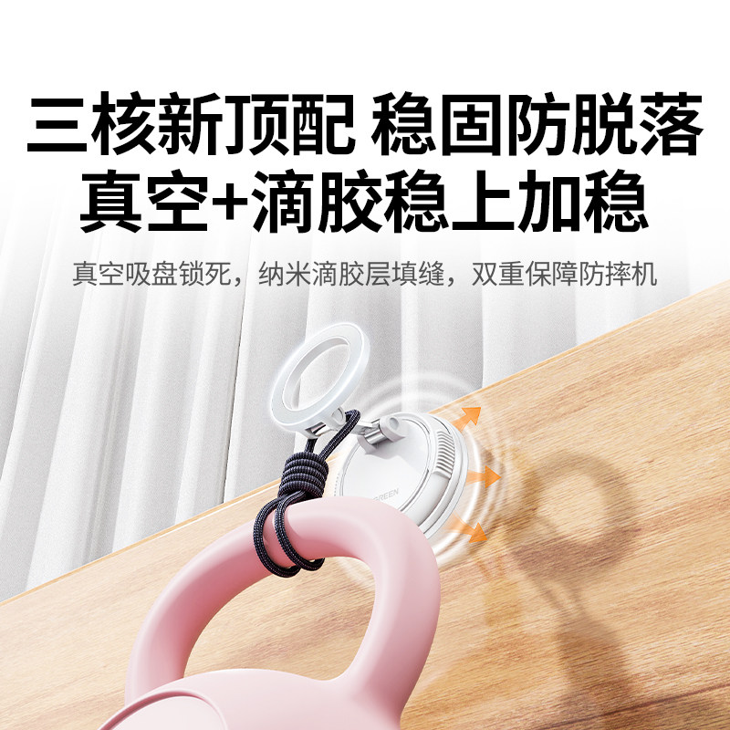 绿联磁吸手机支架真空吸附车载吸盘支架2025新款适用苹果Magsafe磁吸自拍神器旋转桌面浴室墙壁导航固定支撑
