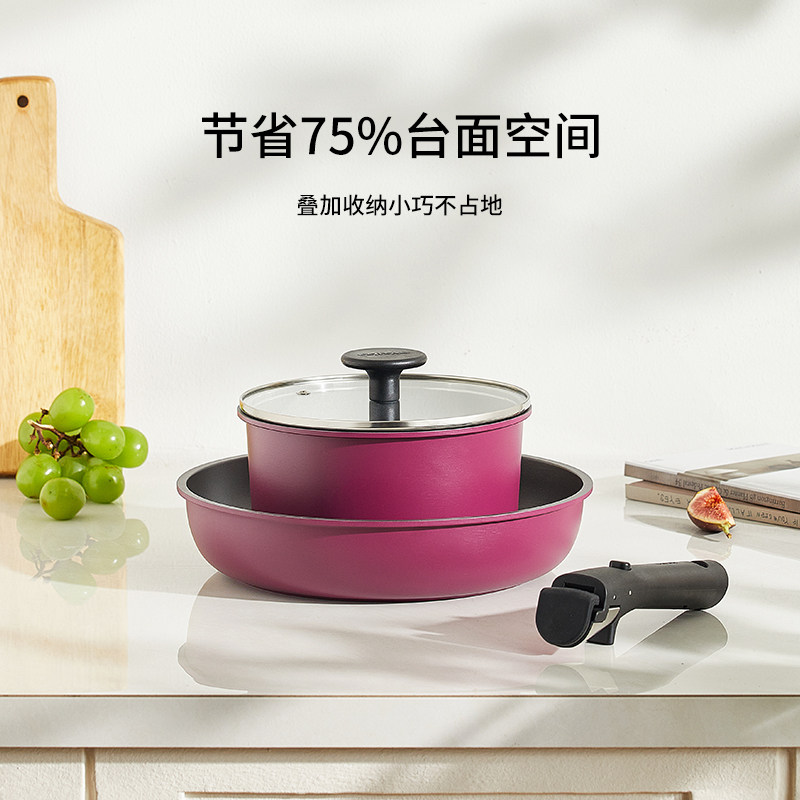 Tefal 特福灵巧叠叠不粘锅家用厨房可拆卸炒锅煎锅多功能锅具套装