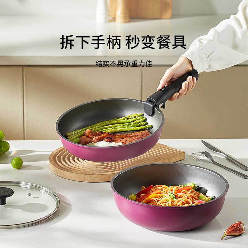 小厨房必备锅具 手柄可拆 轻烟少油不粘锅