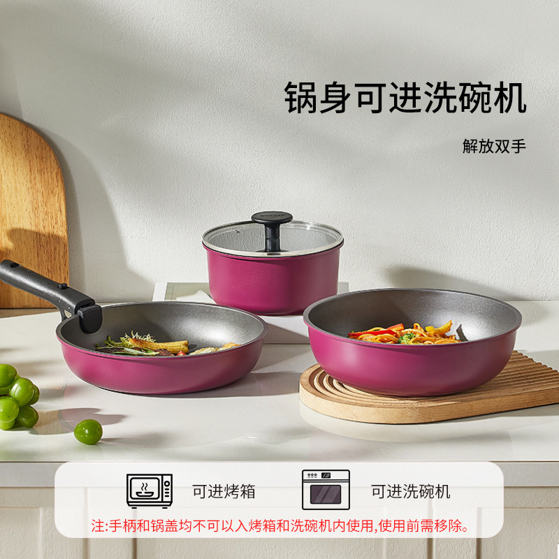 卡罗特不粘锅手柄可拆锅家用厨房炒锅三件套电磁炉燃专用锅具套装