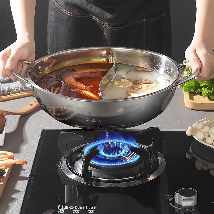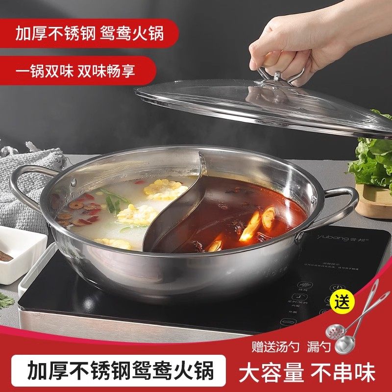 加厚鸳鸯锅火锅盆带盖鸳鸯火锅家用不锈钢火锅锅电磁炉明火专用锅
