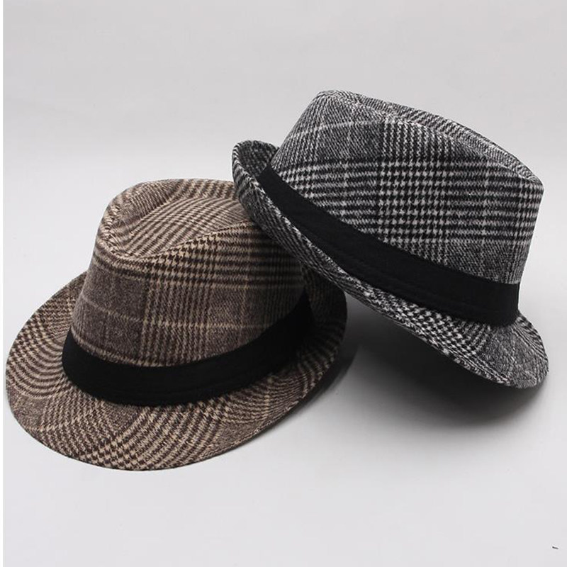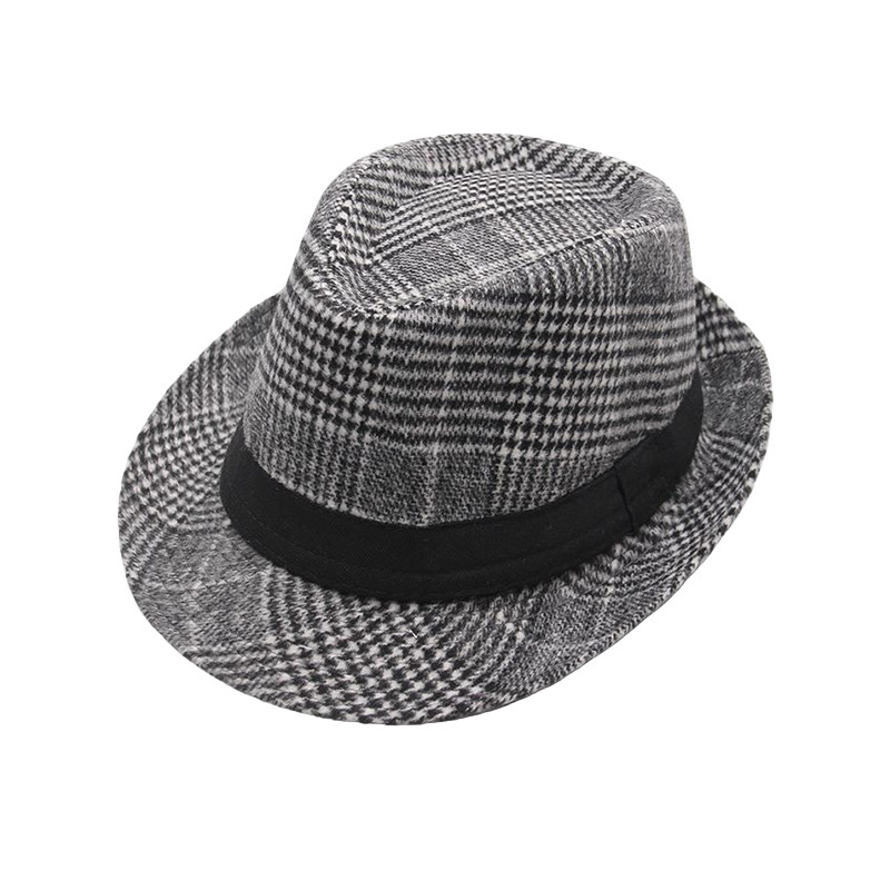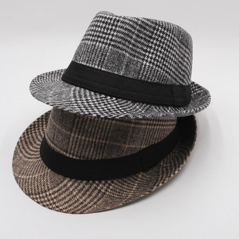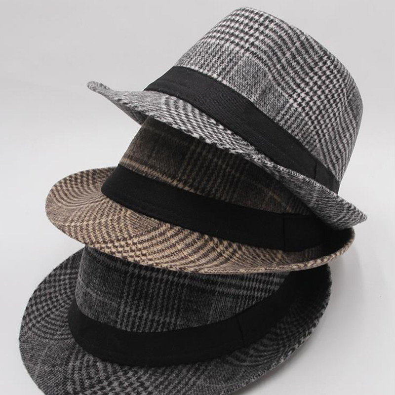 帽子男秋冬季英伦复古格纹爵士帽中老年时尚千鸟格礼帽户外遮阳帽