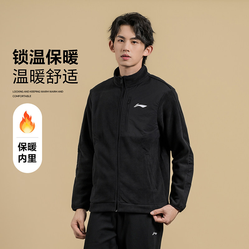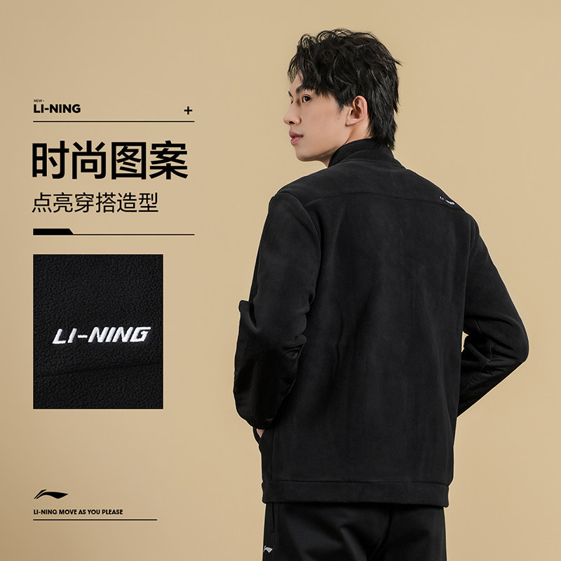 李宁新款羽毛球服开衫无帽摇粒绒卫衣男女秋冬款训练运动上衣外套
