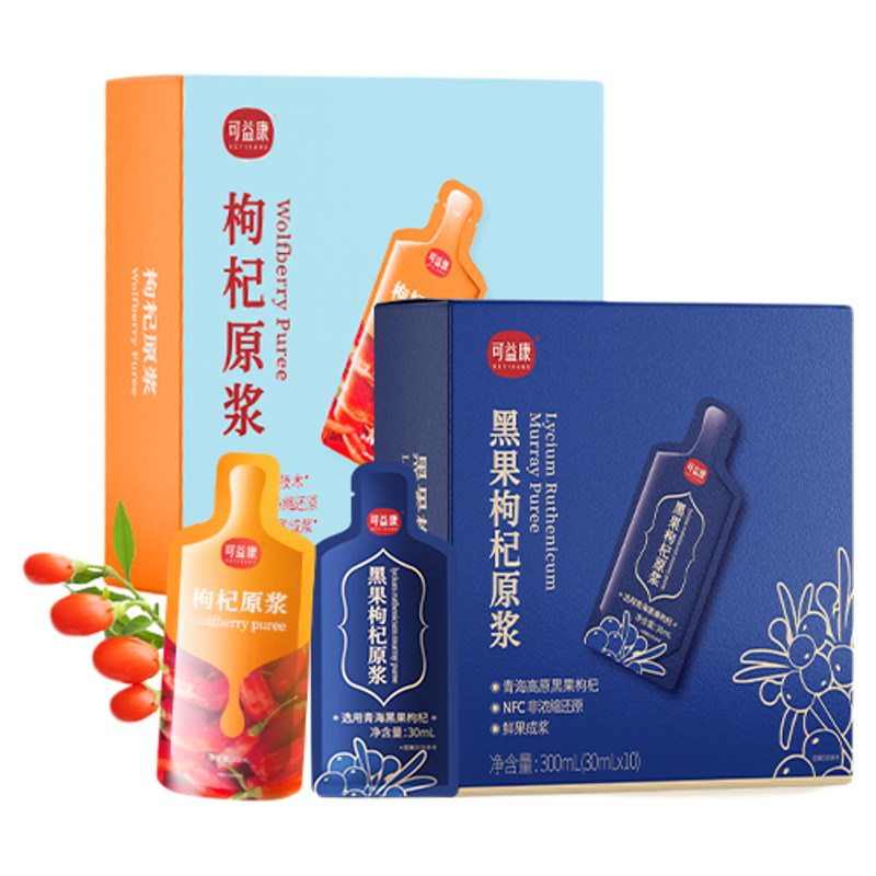 可益康鲜榨黑枸杞原浆鲜枸杞汁宁夏桑葚蓝莓沙棘红枸杞礼盒礼物