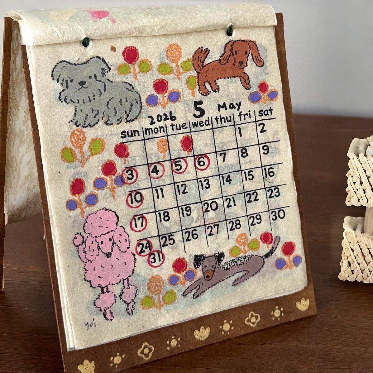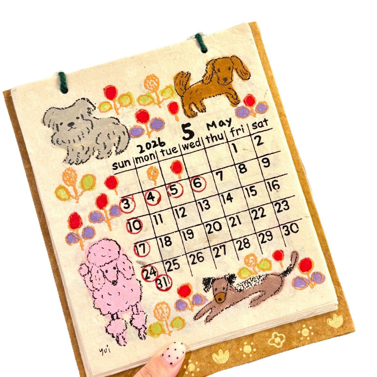 尼泊尔日历2026年小狗涂鸦插画台历摆件小动物月历装饰挂件送礼物