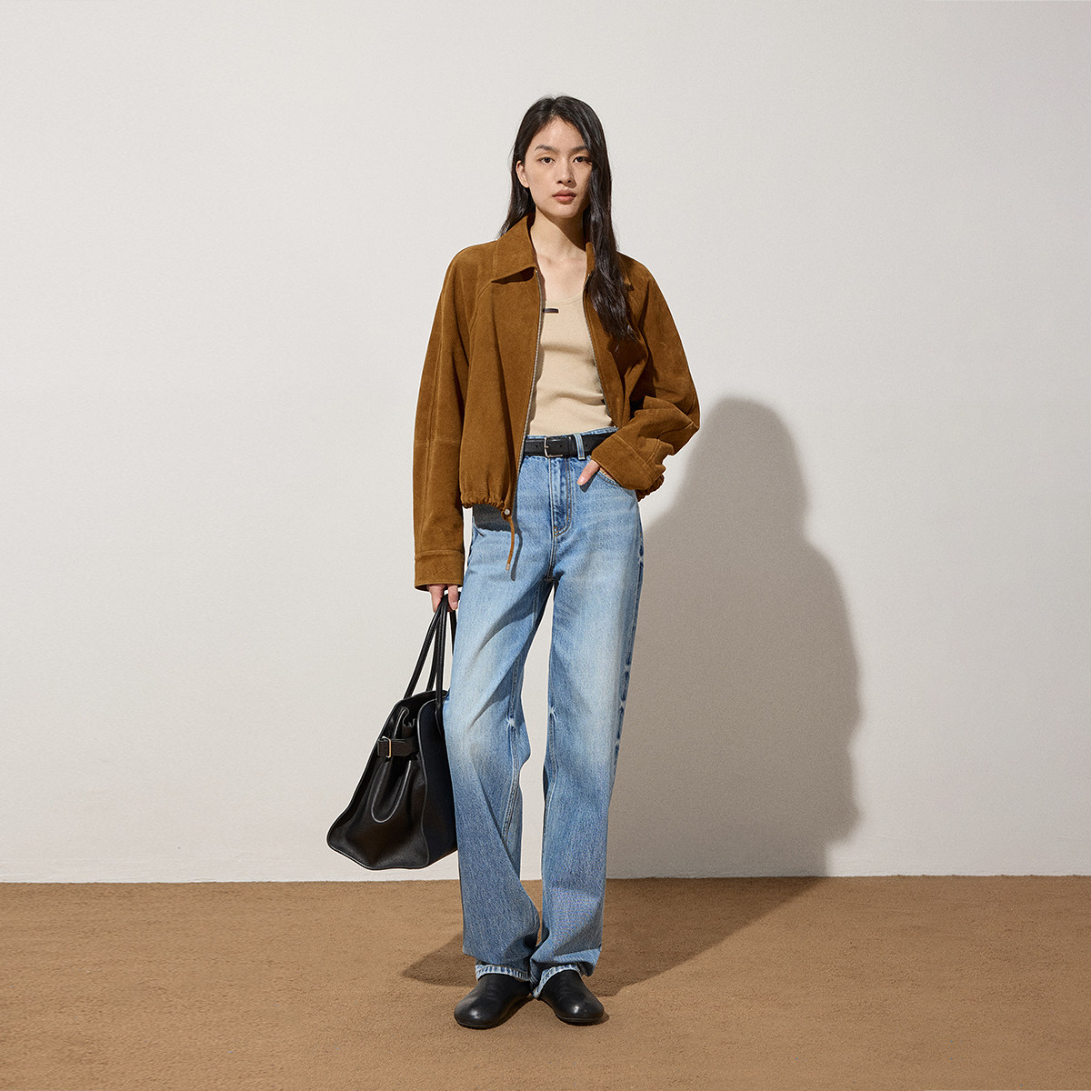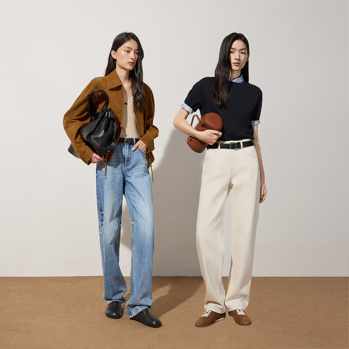 森柔牛仔|商场同款森马牛仔裤女翻边长裤2025秋季新款宽松阔腿裤