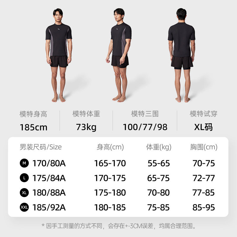 安踏泳衣男子专业紧身防晒简约竞速比赛训练游泳衣正品1824532411