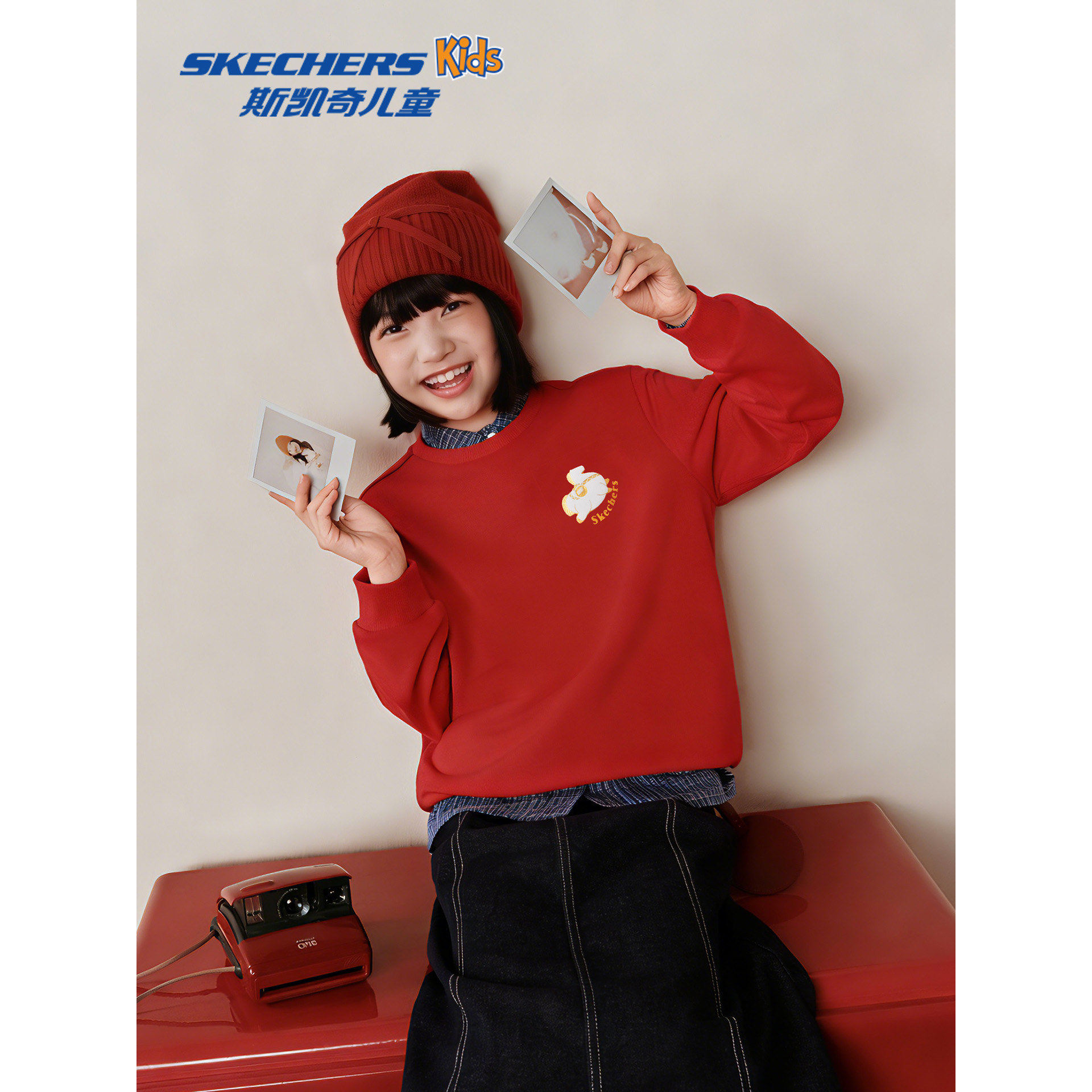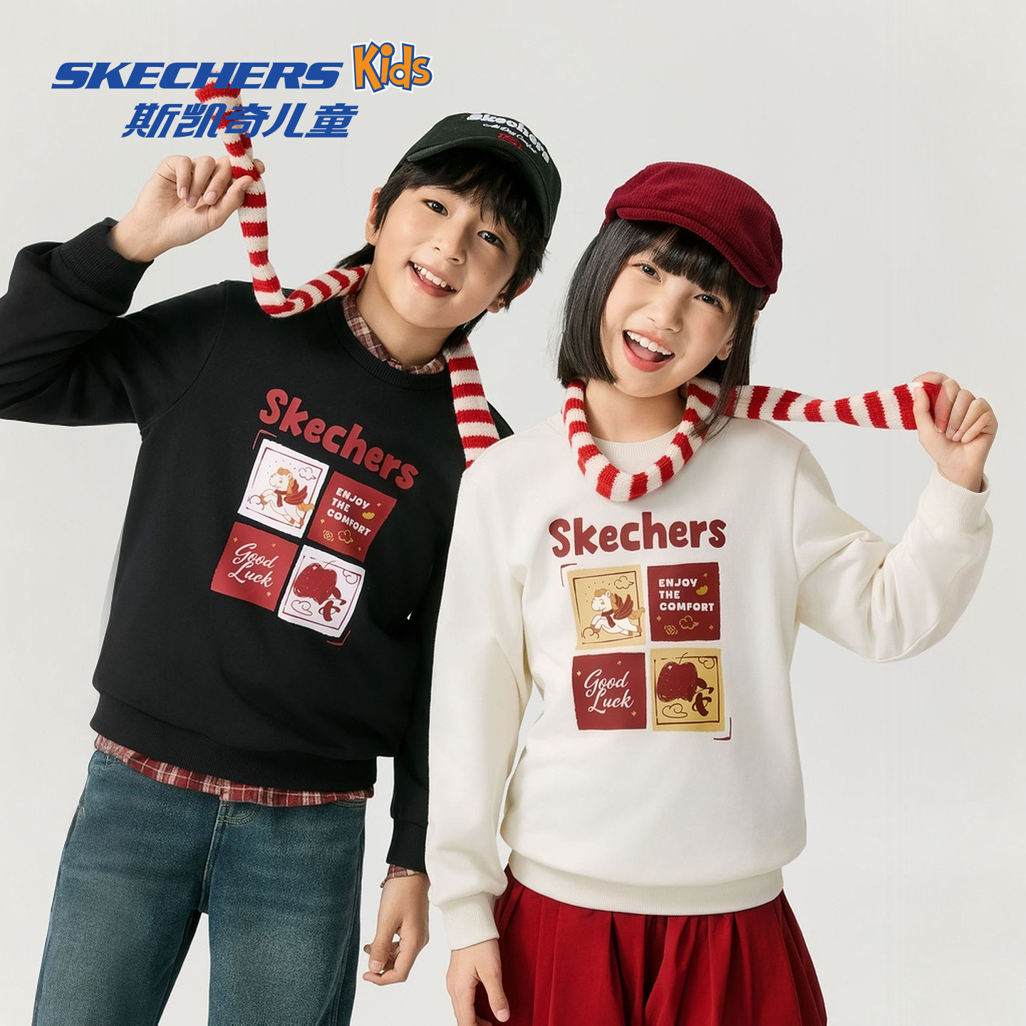 Skechers斯凯奇儿童装本命年红色卫衣马年限定男女童插肩袖衣服