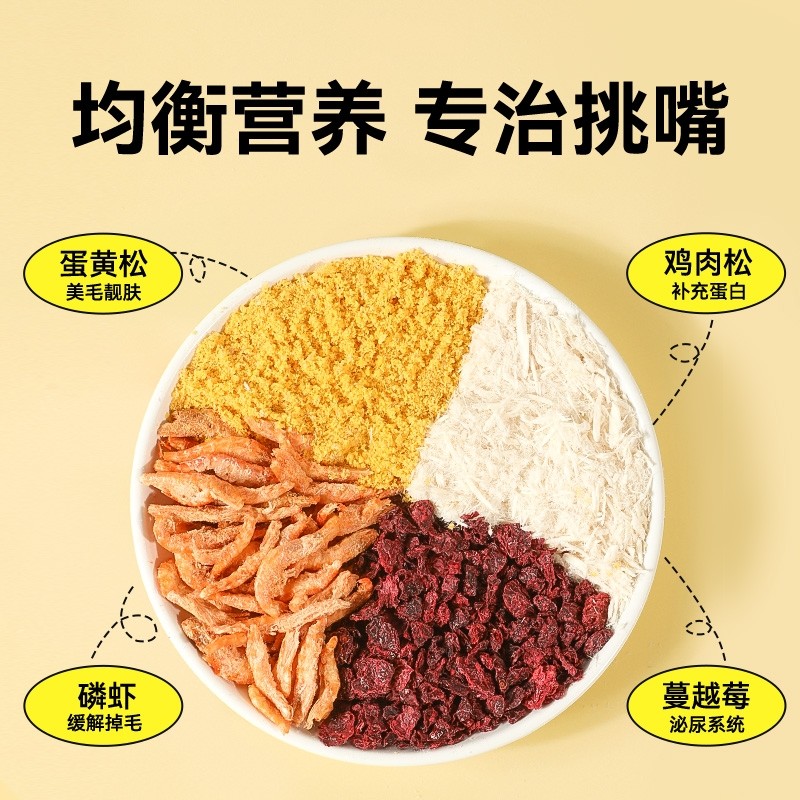 味当家猫零食拌饭猫咪肉松猫粮伴侣蛋黄磷虾鸡肉松冻干碎宠物零食