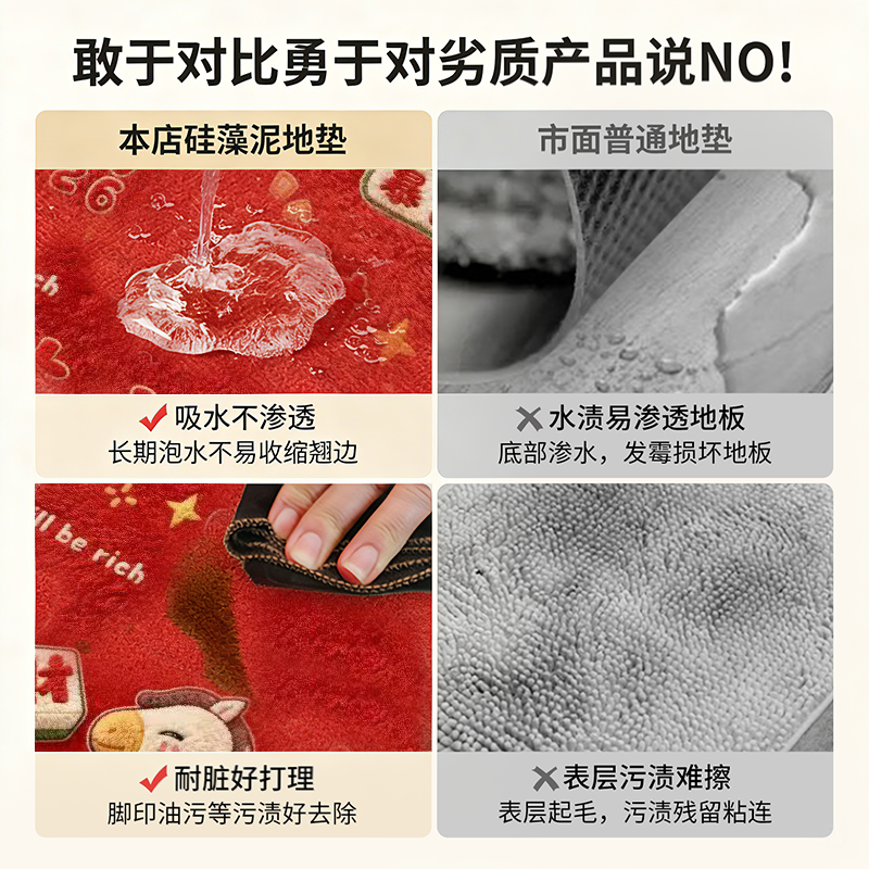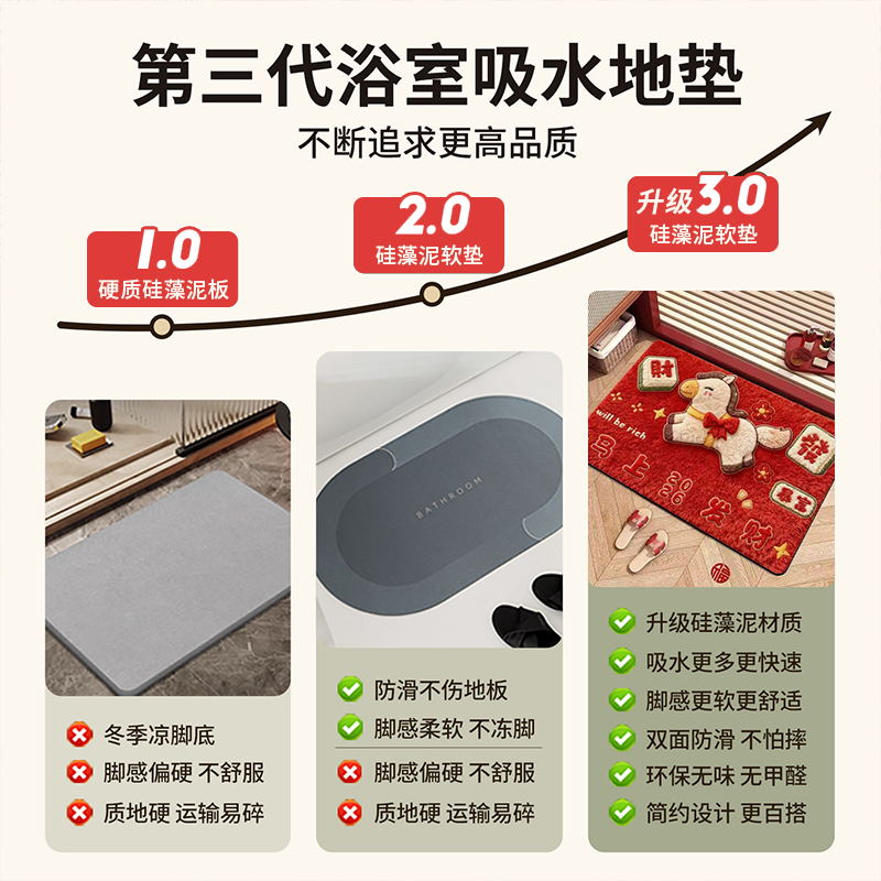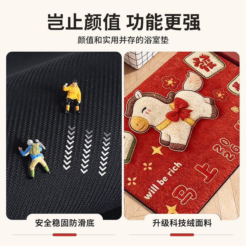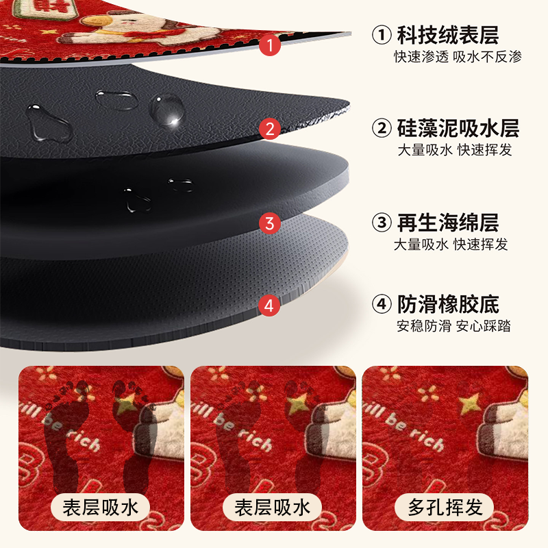 吸水硅藻泥浴室地垫防滑速干脚垫卫生间厕所门口地毯浴水新年洗浴