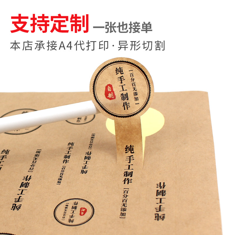 100张A4牛皮纸不干胶打印纸可定制标签贴纸粘贴深色纸箱色商标贴定做光面亚面不粘胶空白背胶纸自粘可粘